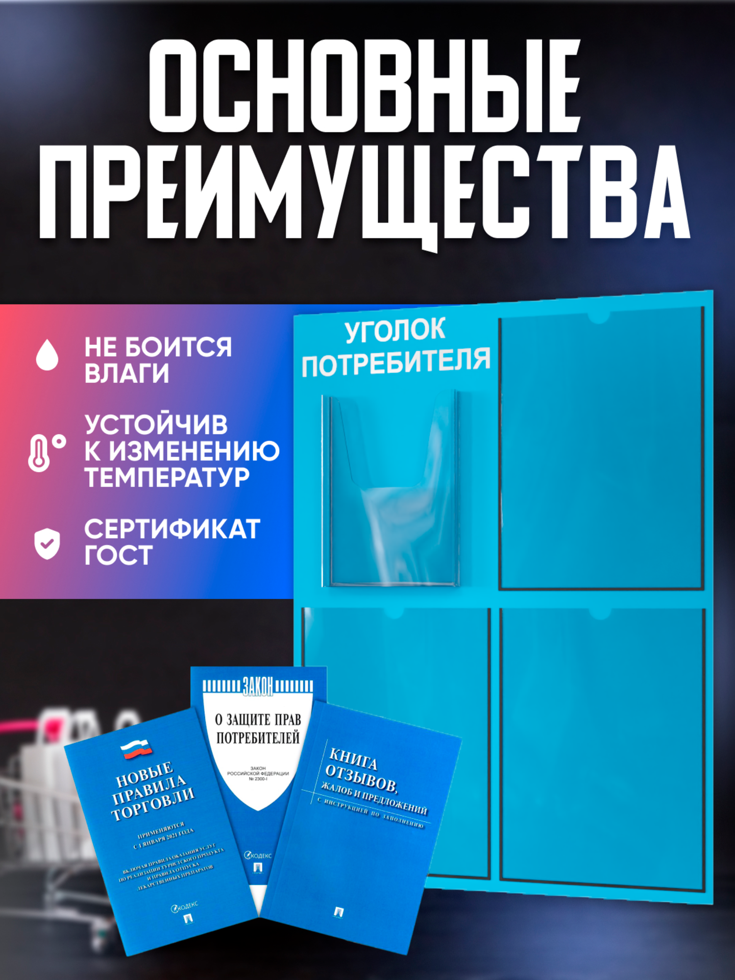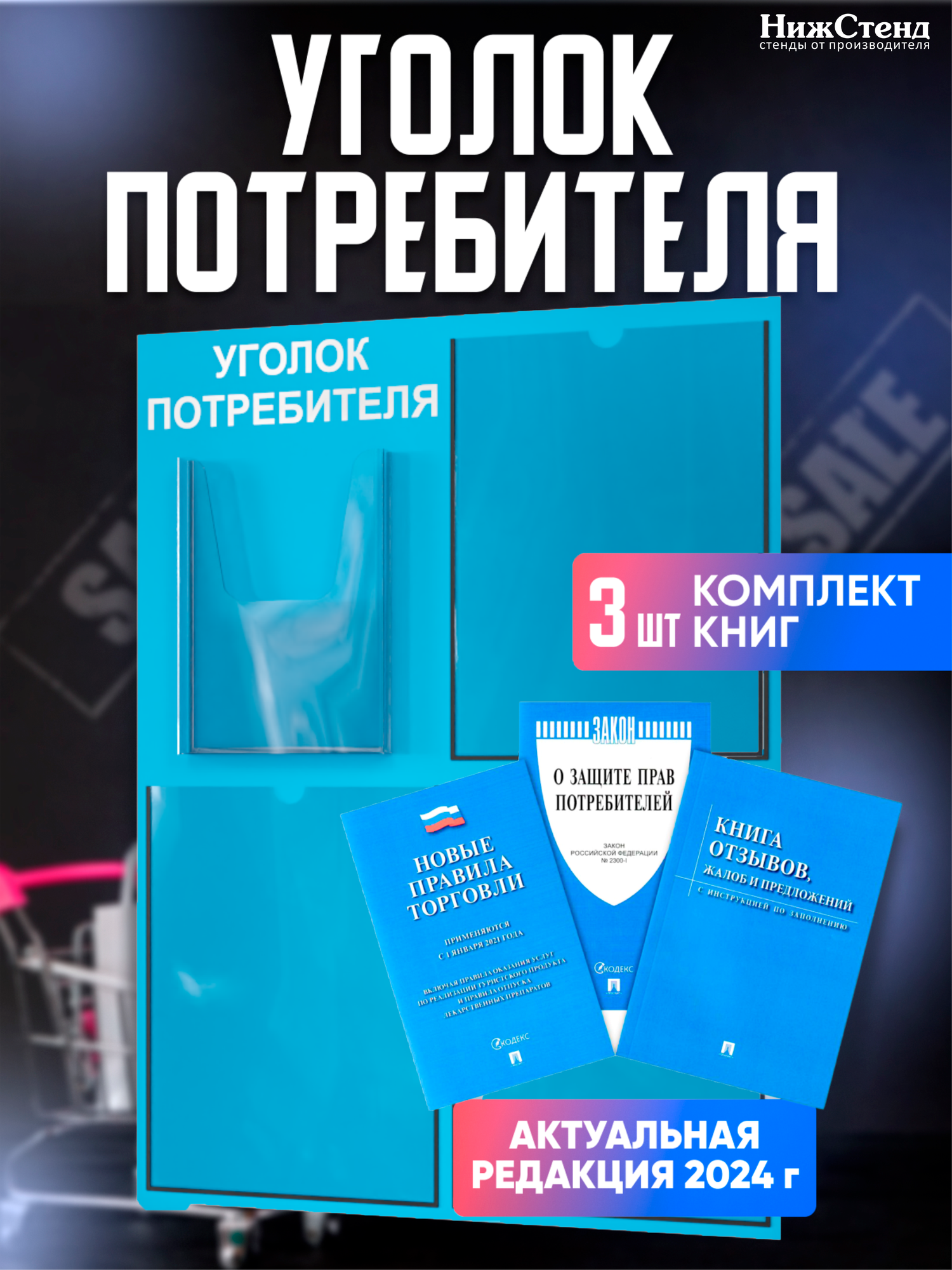 Купить Уголок потребителя 2025 года 490*650 мм с 1 плоским карманом A4 и 1 объемным карманом А5 + комплект книг (3 шт.) редакция 2025 года с доставкой по всей России. Уголок потребителя 2025 года 490*650 мм с 1 плоским карманом A4 и 1 объемным карманом А5 + комплект книг (3 шт.) редакция 2025 года: сравнение цен, характеристики, фото, актуальное наличие и цены.