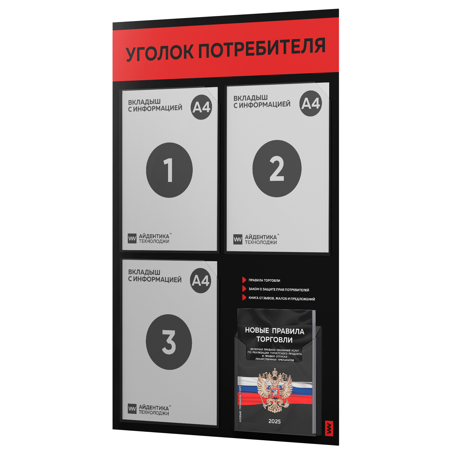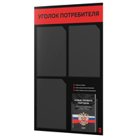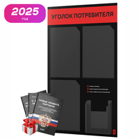 Уголок потребителя 2025 + черный комплект книг 2025, черный стенд с красным, 4 кармана, 2х2, серия Black Color, Айдентика Технолоджи: сравнение цен, характеристики, фото, актуальное наличие и цены.