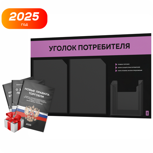 Уголок потребителя 2025 + черный комплект книг 2025, черный стенд с лавандовым, 3 кармана, серия Black Color, Айдентика Технолоджи: сравнение цен, характеристики, фото, актуальное наличие и цены.