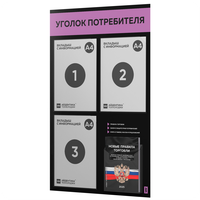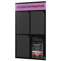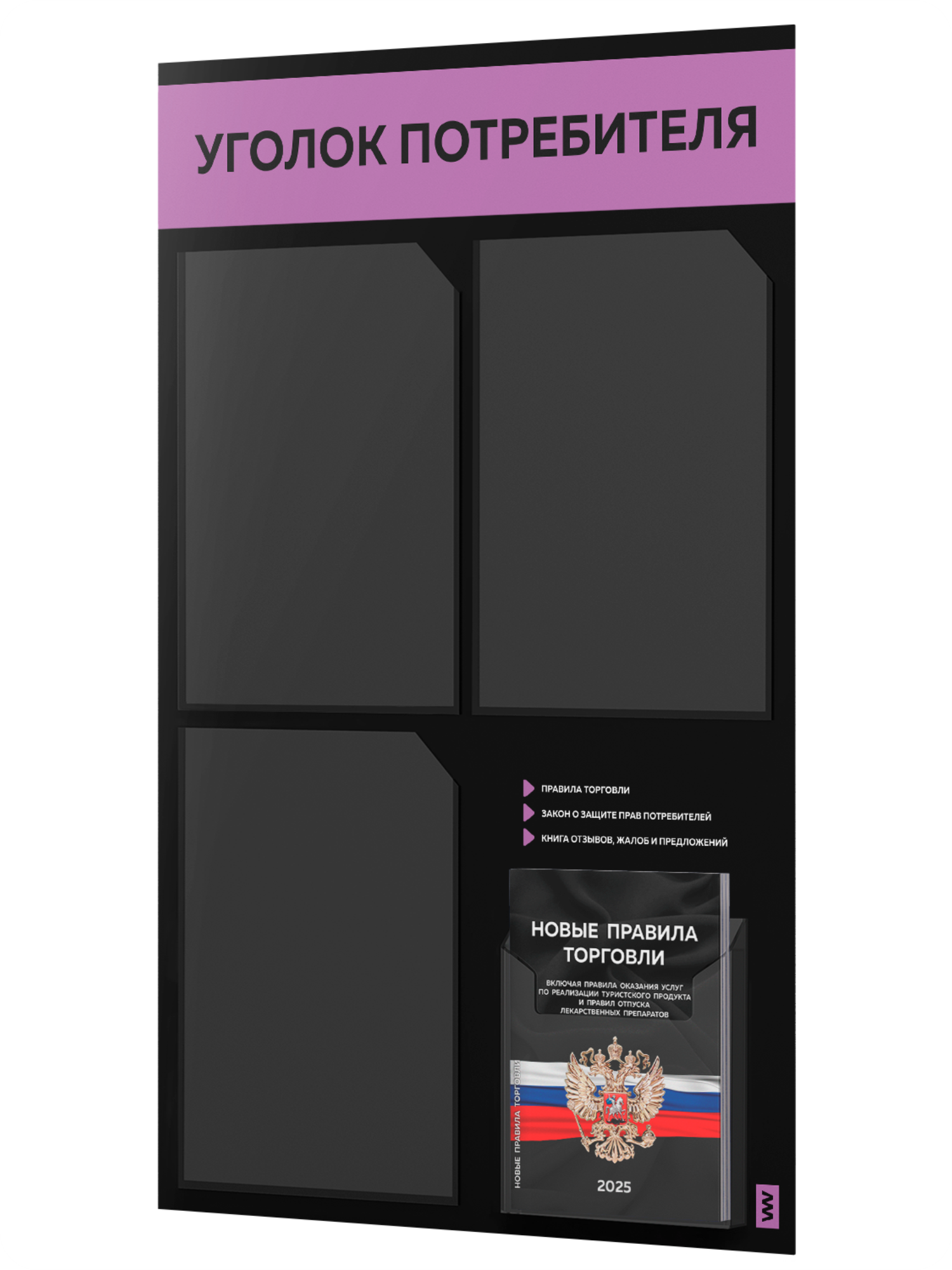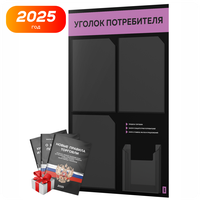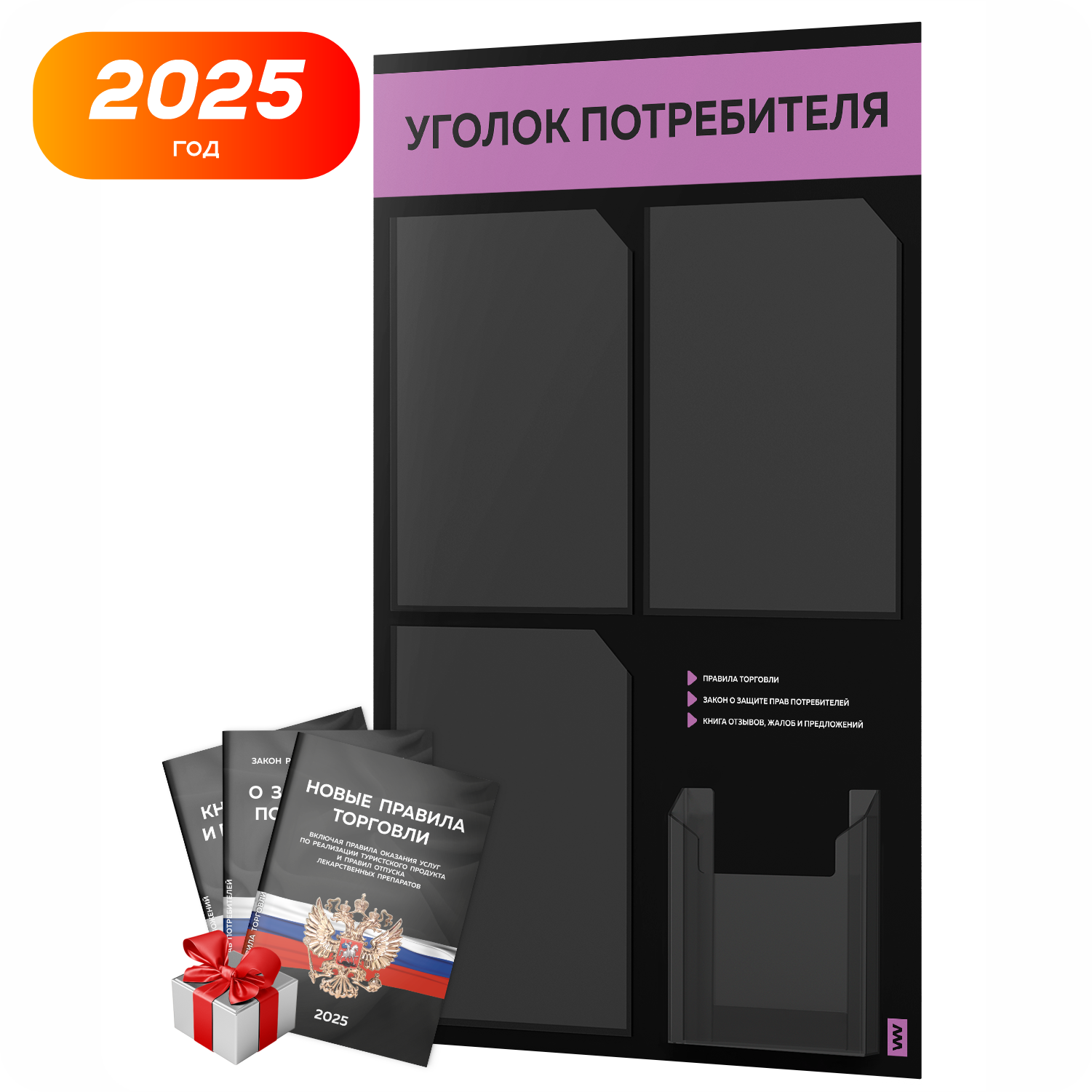 Уголок потребителя 2025 + черный комплект книг 2025, черный стенд с лавандовым, 4 кармана, 2х2, серия Black Color, Айдентика Технолоджи: сравнение цен, характеристики, фото, актуальное наличие и цены.