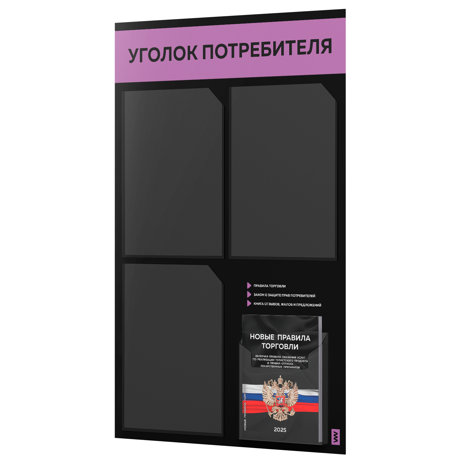 Купить Уголок потребителя 2025 + черный комплект книг 2025, черный стенд с лавандовым, 4 кармана, 2х2, серия Black Color, Айдентика Технолоджи с доставкой по всей России.