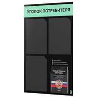 Уголок потребителя 2025 + черный комплект книг 2025, черный стенд с мятным, 4 кармана, 2х2, серия Black Color, Айдентика Технолоджи: сравнение цен, характеристики, фото, актуальное наличие и цены.