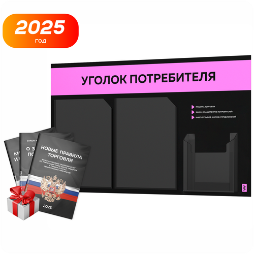 Купить Уголок потребителя 2025 + черный комплект книг 2025, черный стенд с розовым, 3 кармана, серия Black Color, Айдентика Технолоджи с доставкой по всей России.