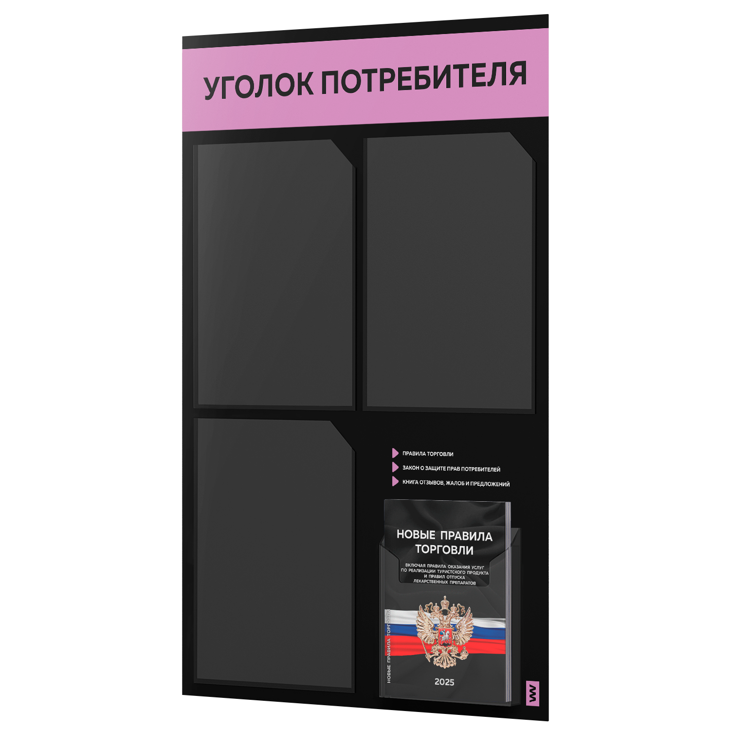 Купить Уголок потребителя 2025 + черный комплект книг 2025, черный стенд с сиреневым, 4 кармана, 2х2, серия Black Color, Айдентика Технолоджи с доставкой по всей России.