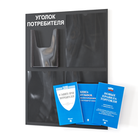 Уголок потребителя оснащен четырьмя карманами, что позволяет разместить в них все необходимые документы и информацию. Плоские карманы формата А4 подходят для размещения рекламных материалов, а объемный карман формата А5 - для хранения книг.