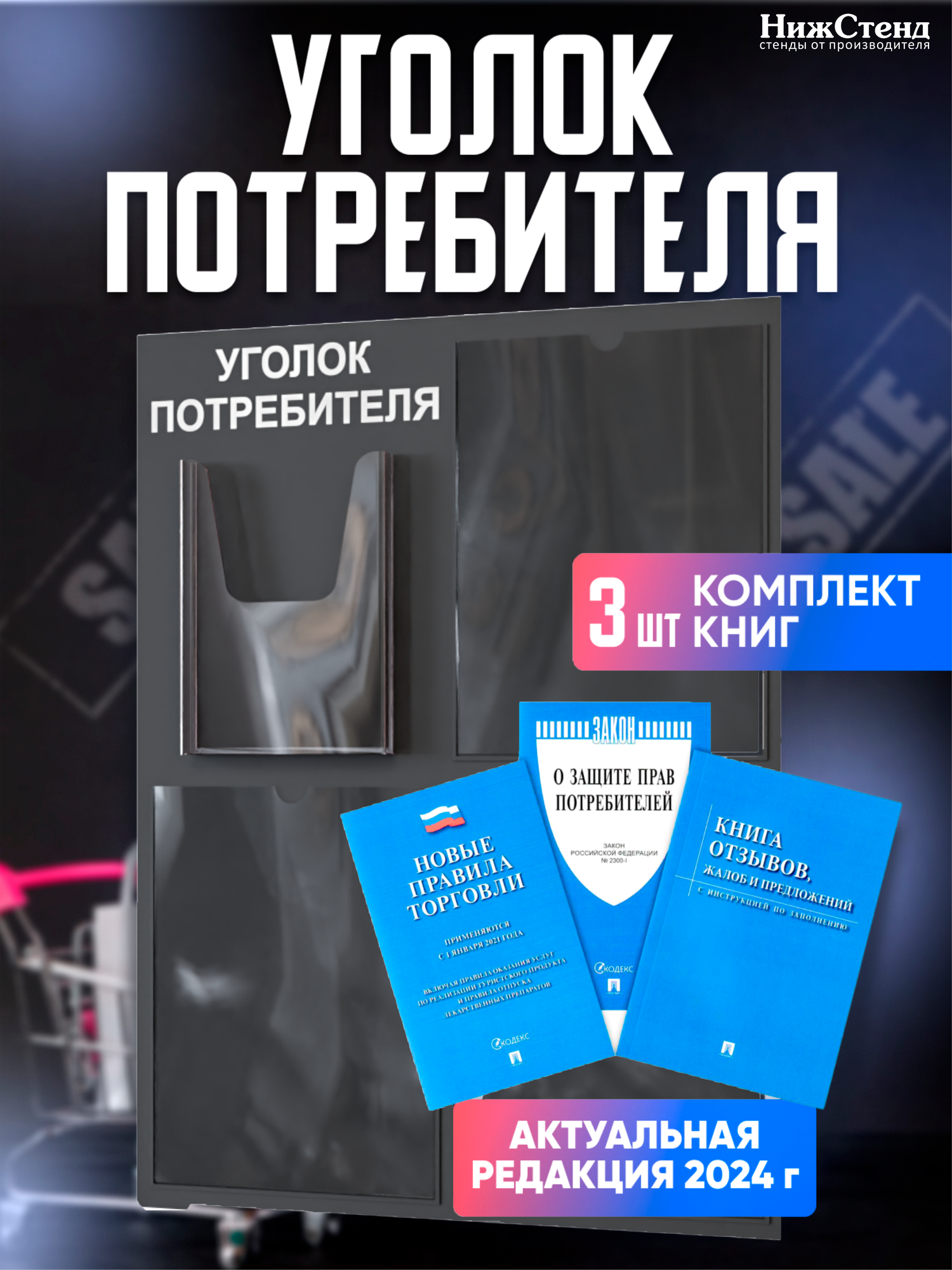 Купить Уголок потребителя 2025 года 490*650 мм с 1 плоским карманом A4 и 1 объемным карманом А5 + комплект книг (3 шт.) редакция 2025 года с доставкой по всей России. Уголок потребителя 2025 года 490*650 мм с 1 плоским карманом A4 и 1 объемным карманом А5 + комплект книг (3 шт.) редакция 2025 года: сравнение цен, характеристики, фото, актуальное наличие и цены.