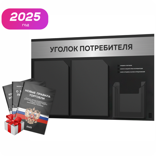 Купить Уголок потребителя 2026 + комплект книг 2026 г, черный информационный стенд с брашированным хромированным металликом, 3 кармана, серия Black Metallic, Айдентика Технолоджи с доставкой по всей России. Уголок потребителя 2026 + комплект книг 2026 г, черный информационный стенд с брашированным хромированным металликом, 3 кармана, серия Black Metallic, Айдентика Технолоджи: сравнение цен, характеристики, фото, актуальное наличие и цены.