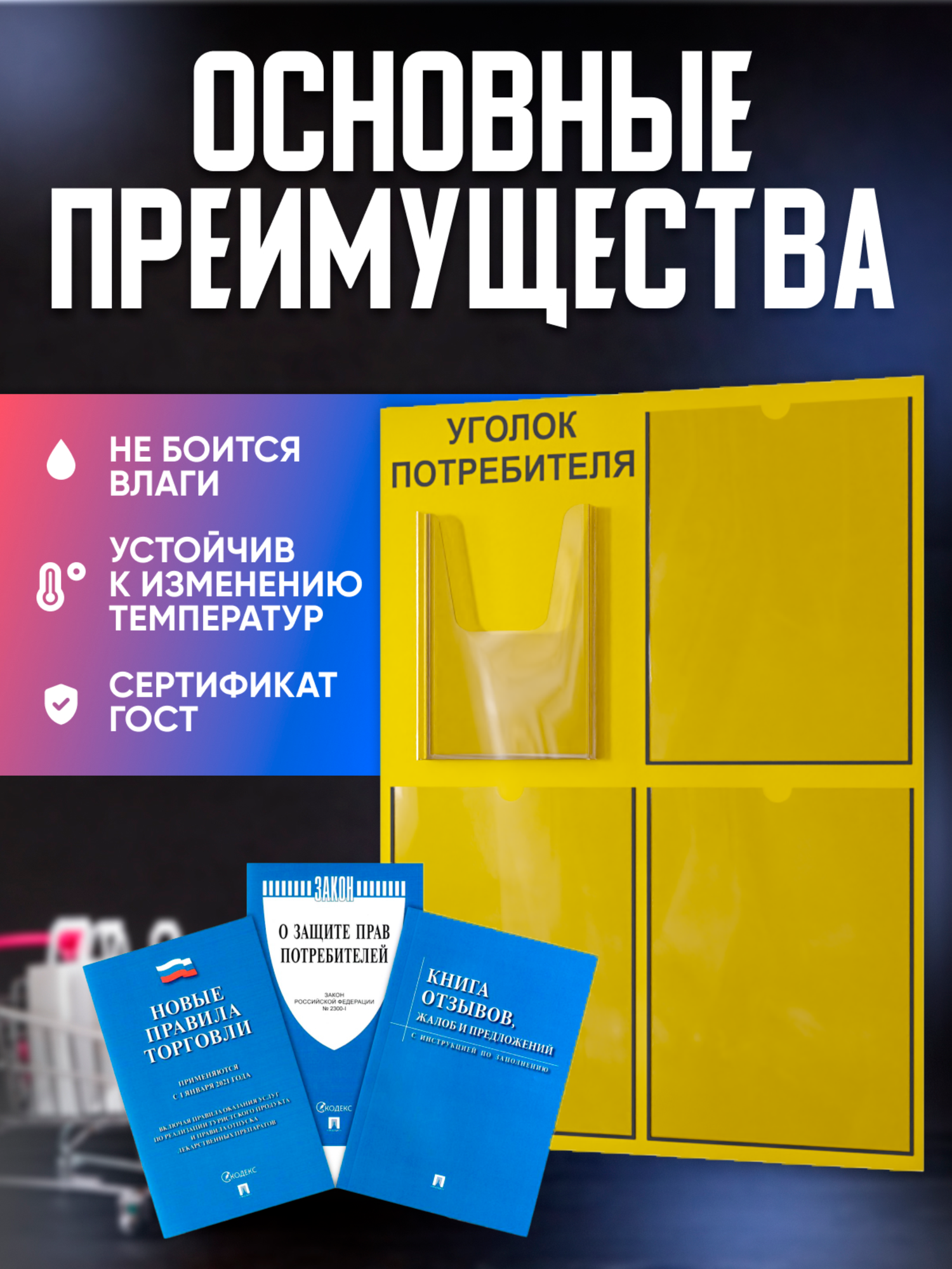Купить Уголок потребителя 2025 + комплект книг (3 шт.), 490*650 мм, с 3 плоскими карманами А4 и 1 объемным карманом А5 с доставкой по всей России. Уголок потребителя 2025 + комплект книг (3 шт.), 490*650 мм, с 3 плоскими карманами А4 и 1 объемным карманом А5: сравнение цен, характеристики, фото, актуальное наличие и цены.