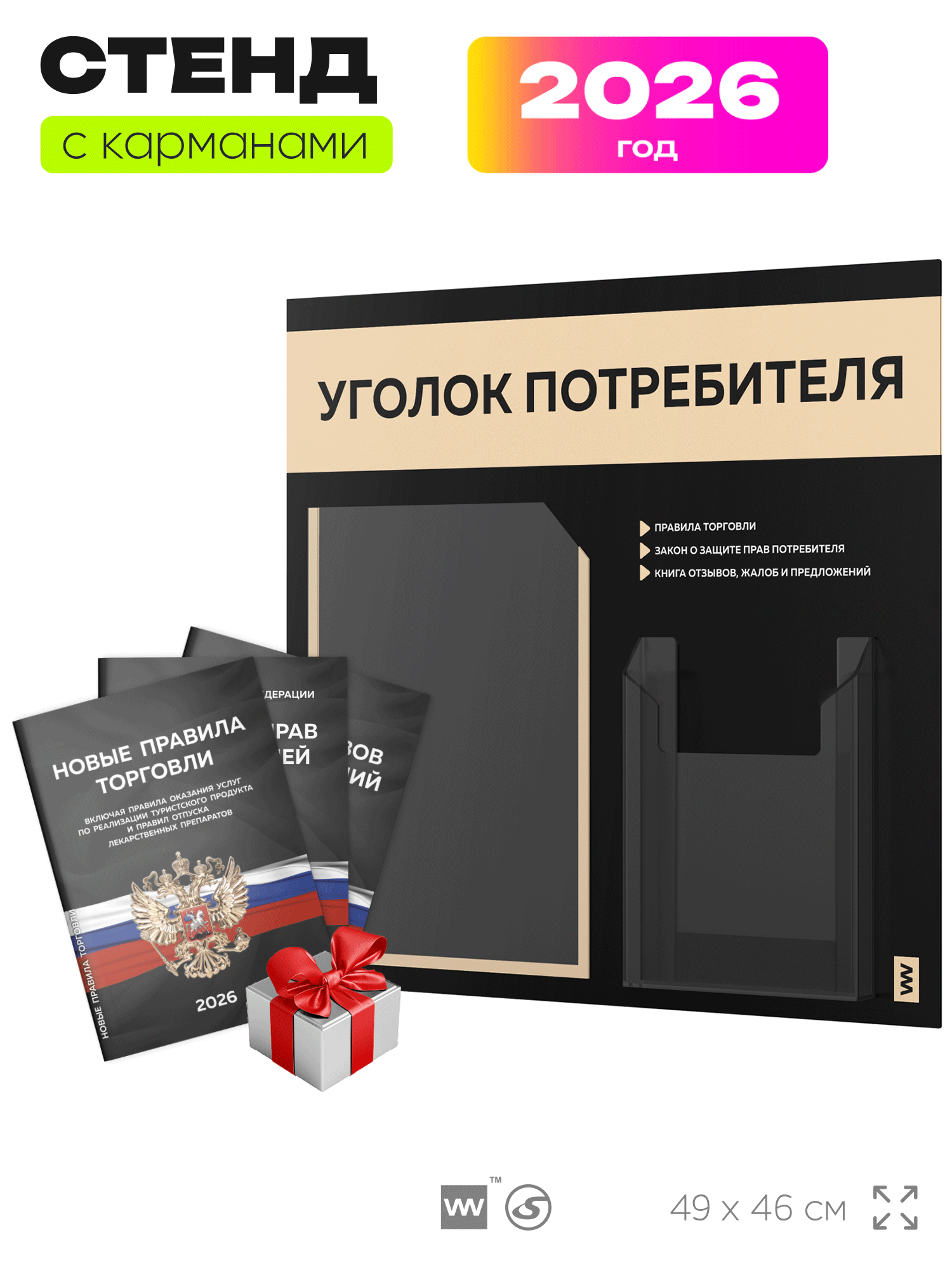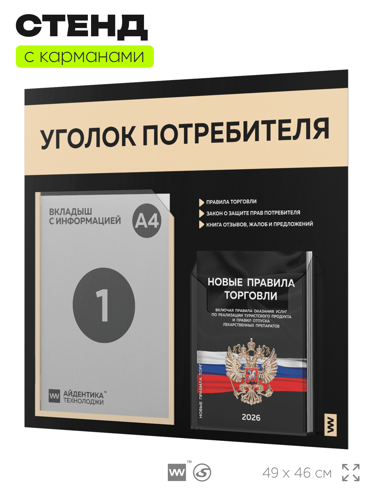 Купить Уголок потребителя 2026 c книгами, информационный стенд покупателя черный с бежевым, Айдентика Технолоджи с доставкой по всей России. Уголок потребителя 2026 c книгами, информационный стенд покупателя черный с бежевым, Айдентика Технолоджи: сравнение цен, характеристики, фото, актуальное наличие и цены.