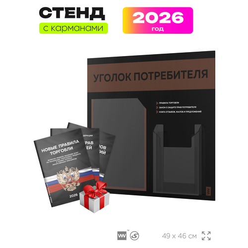 Купить Уголок потребителя 2026 c книгами, информационный стенд покупателя черный с коричневым, Айдентика Технолоджи с доставкой по всей России. Уголок потребителя 2026 c книгами, информационный стенд покупателя черный с коричневым, Айдентика Технолоджи: сравнение цен, характеристики, фото, актуальное наличие и цены.