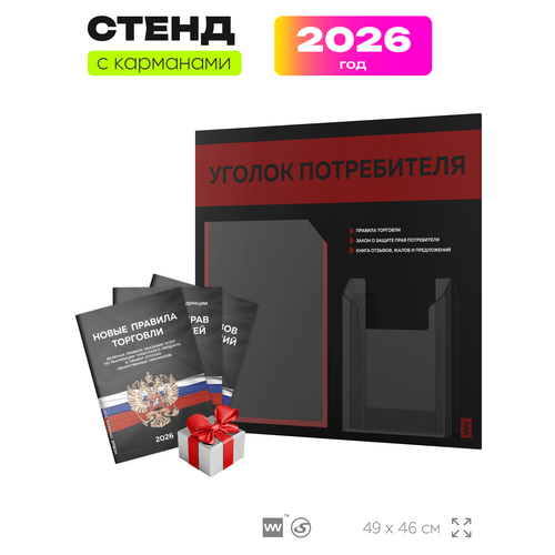 Купить Уголок потребителя 2026 c книгами, информационный стенд покупателя черный с темно-красным, Айдентика Технолоджи с доставкой по всей России. Уголок потребителя 2026 c книгами, информационный стенд покупателя черный с темно-красным, Айдентика Технолоджи: сравнение цен, характеристики, фото, актуальное наличие и цены.