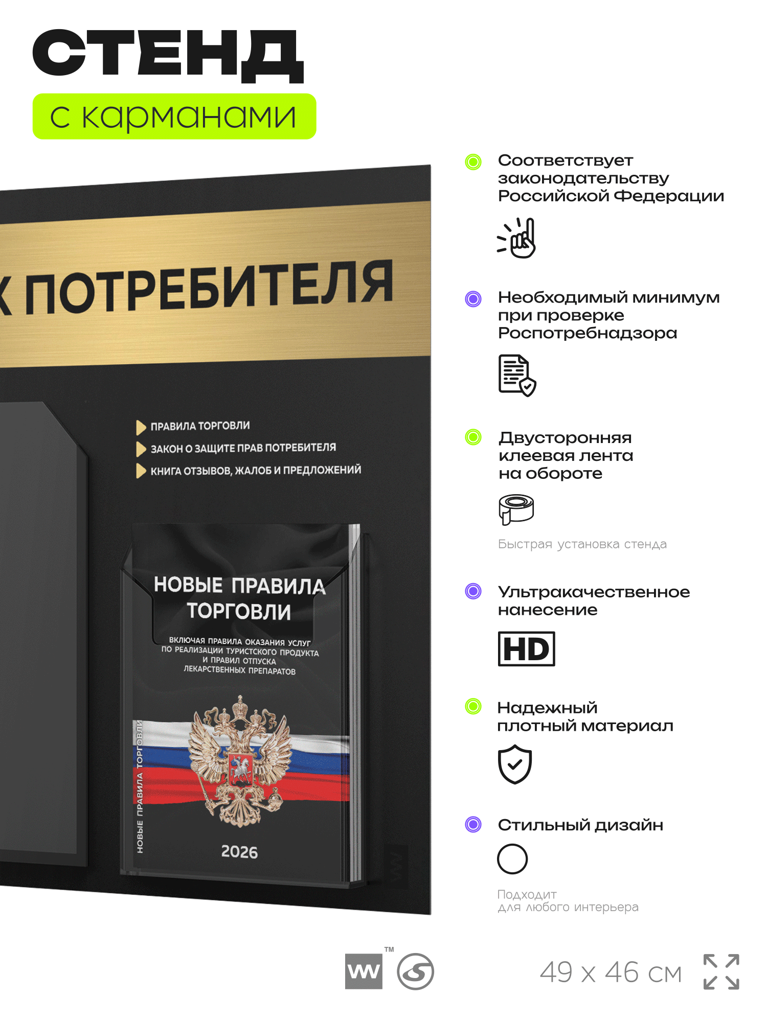 Купить Уголок потребителя 2026 c книгами, информационный стенд покупателя черный с золотом, Айдентика Технолоджи с доставкой по всей России.