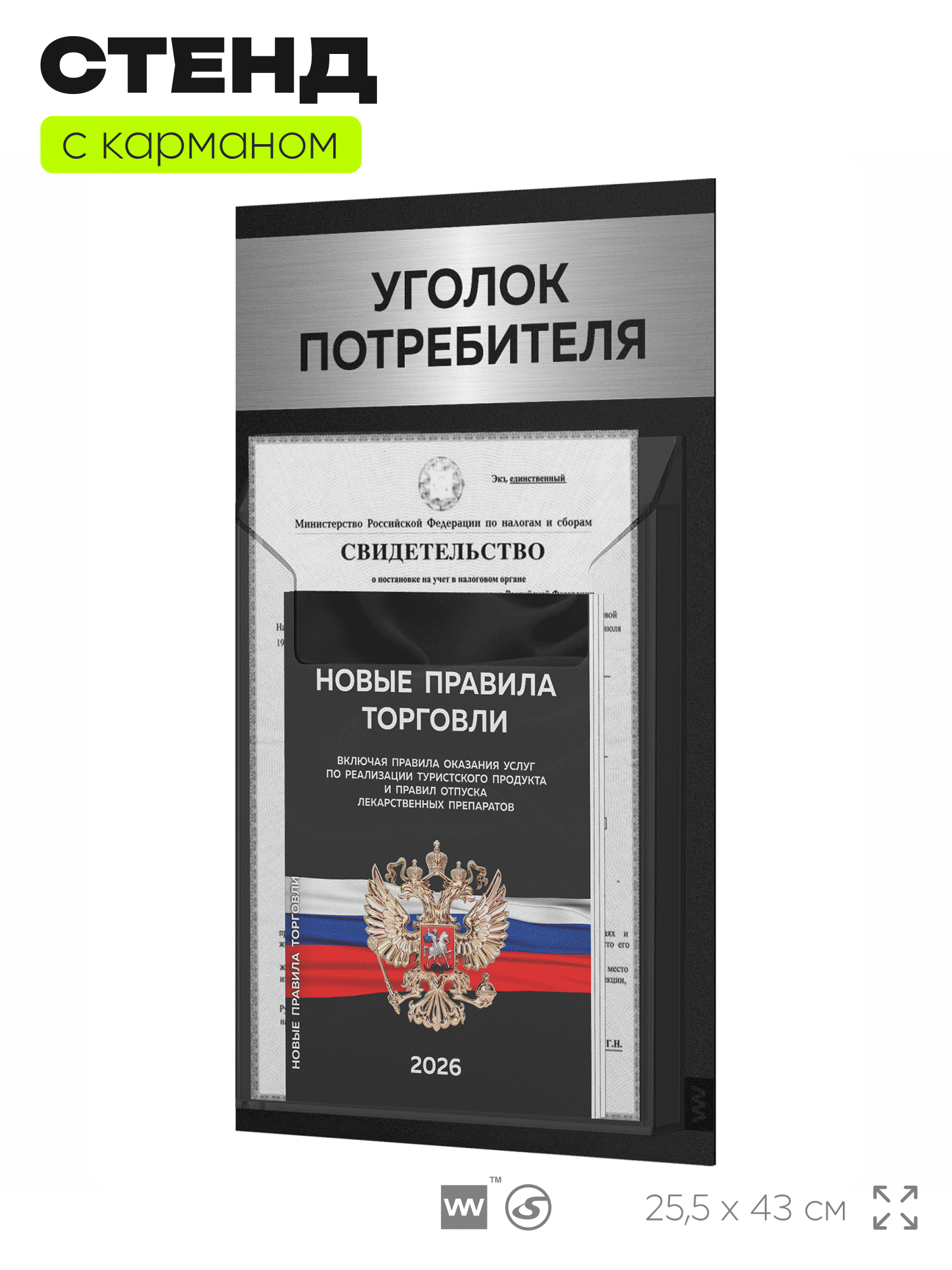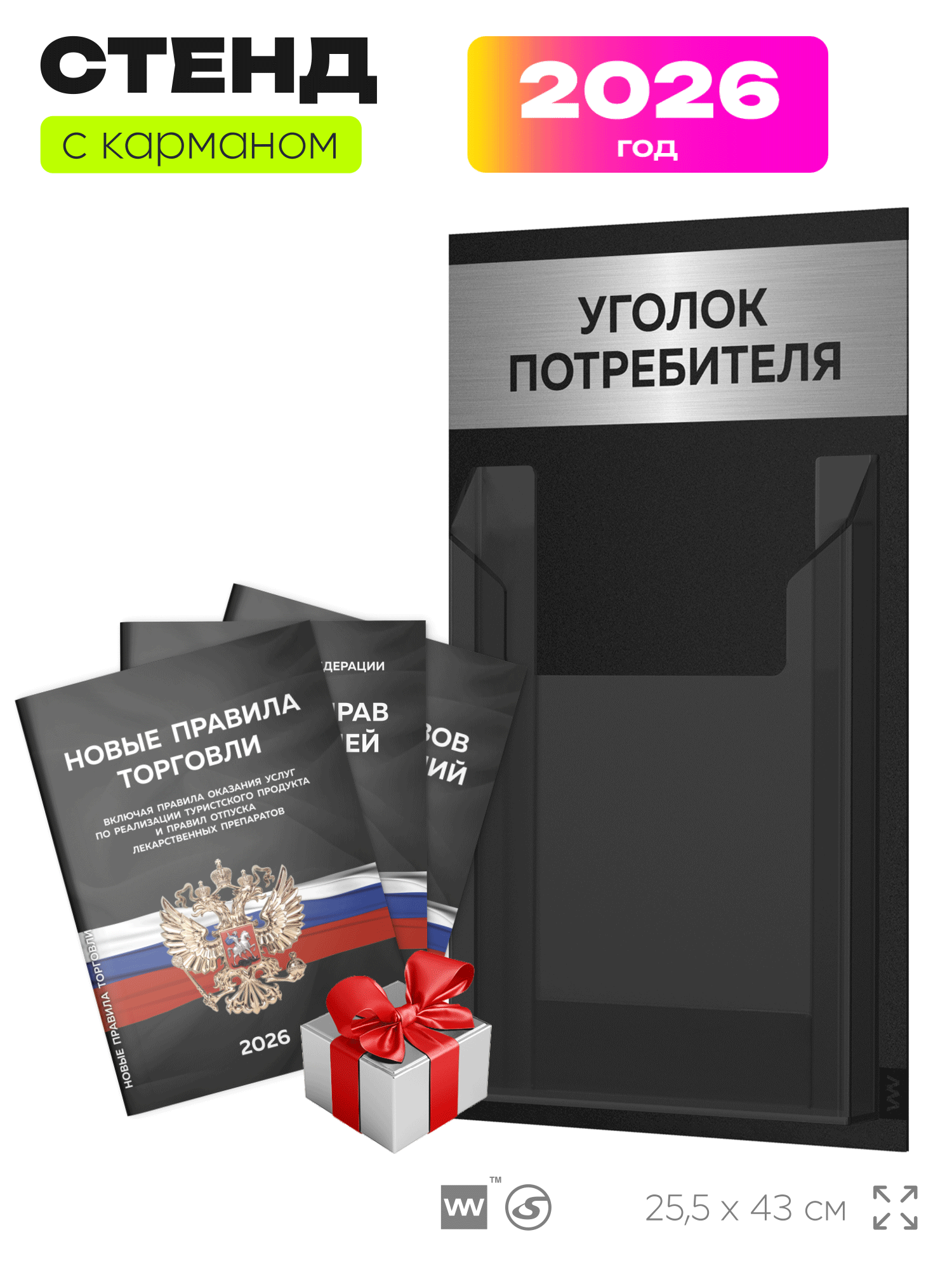 Купить Уголок потребителя 2026 Мини + черный комплект книг, черный информационный стенд с брашированным металликом, Black Metallic с доставкой по всей России. Уголок потребителя 2026 Мини + черный комплект книг, черный информационный стенд с брашированным металликом, Black Metallic: сравнение цен, характеристики, фото, актуальное наличие и цены.
