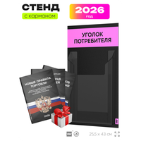 Купить Уголок потребителя 2026 Мини + комплект книг, черный стенд покупателя со светло-розовым, 1 карман, серия Black Mini, Айдентика Технолоджи с доставкой по всей России. Уголок потребителя 2026 Мини + комплект книг, черный стенд покупателя со светло-розовым, 1 карман, серия Black Mini, Айдентика Технолоджи: сравнение цен, характеристики, фото, актуальное наличие и цены.
