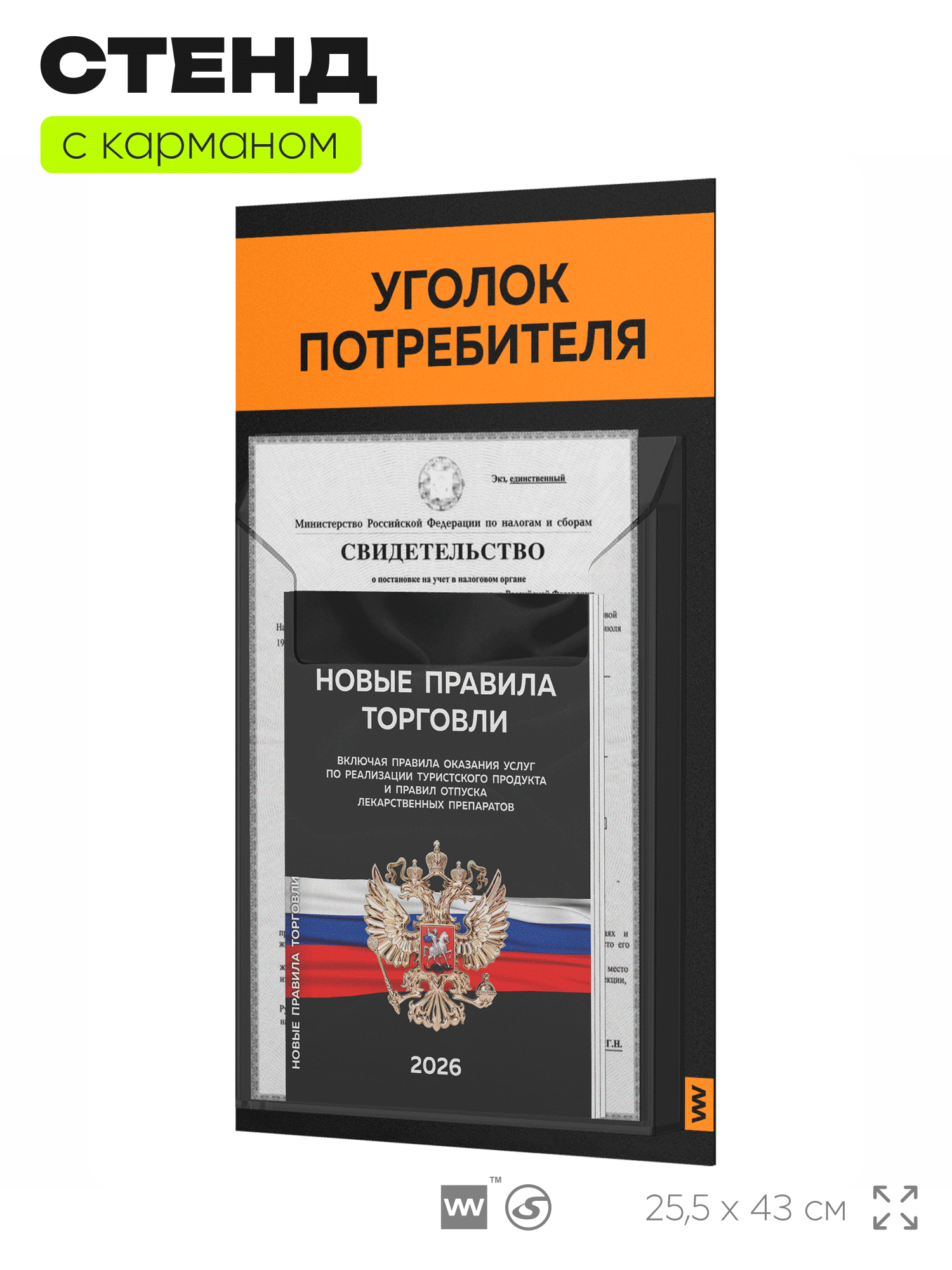 Купить Уголок потребителя 2026 Мини + комплект книг, черный стенд с 1 карманом и оранжевым, серия Black Mini, Айдентика Технолоджи с доставкой по всей России. Уголок потребителя 2026 Мини + комплект книг, черный стенд с 1 карманом и оранжевым, серия Black Mini, Айдентика Технолоджи: сравнение цен, характеристики, фото, актуальное наличие и цены.