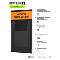 Черный уголок потребителя Мини на 1 карман и оранжевым оформлением, это отличное решение для небольшого магазина, выездной торговли и ярмарки, где нет места для стационарного уголка потребителя. Этот стенд полностью отвечает требованиям Роспотребнадзора, вся необходимая информация для покупателя размещается в одном кармане. Стенд уже укомплектован набором необходимых книг свежего и актуального издания этого года. Айдентика Технолоджи это проверенный российский бренд выпускающий качественное торговое оборудование по доступной цене. Отличительной чертой продукции этого бренда является высокое внимание к деталям, все стенды укомплектованы крепежом и другими вспомогательными атрибутами. Также визитной карточкой бренда является большой ассортимент цветов продукции. Уголок потребителя подойдет для ИП и ООО, небольшого магазина, салона красоты, шиномонтажа, сервисного центра и других организаций. Айдентика Ритейл является официальным дилером компании, это позволяет гарантировать выгодную цену для покупателей.