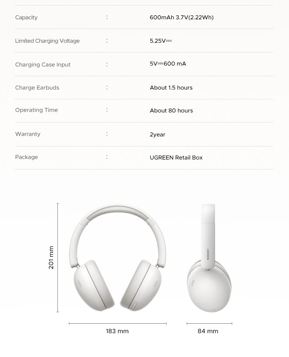 Беспроводные наушники UGREEN Studio Max2, HP205, цвет Light Gray: сравнение цен, характеристики, фото, актуальное наличие и цены.