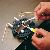 Универсальный Ухват итальянской фирмы Amati незаменимая вещь для фиксации деталей неправильной формы. Деталь надежно фиксируется между четырьмя металлическими упорами, расположенными в отверстиях каждой из половин Ухвата. Множество отверстий и вариантов установки упоров обеспечивают гарантию фиксации любой детали. Два С-образных зажима (входят в комплект) закрепляют Ухват на краю стола. Это один из тех инструментов и приспособлений Amati, которые вы будете использовать достаточно часто.