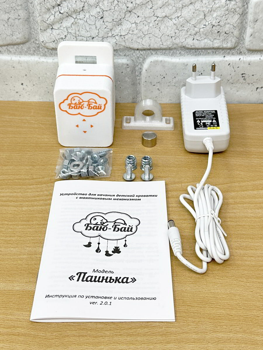 - Подходит к разным видам кроваток с маятниковым механизмом. Устройство для детской кроватки подходит практически ко всем моделям - продольный, поперечный и универсальный маятниковый механизм. Единственное условие - во время качки система не должна создавать чрезмерное трение. Чтобы определить, подходит ли Баю Бай Паинька для Вашей кроватки, толкните колыбель - до полной остановки качающийся маятник должен сделать не менее 30 колебаний (правильно установленный маятник делает от 80 колебаний).