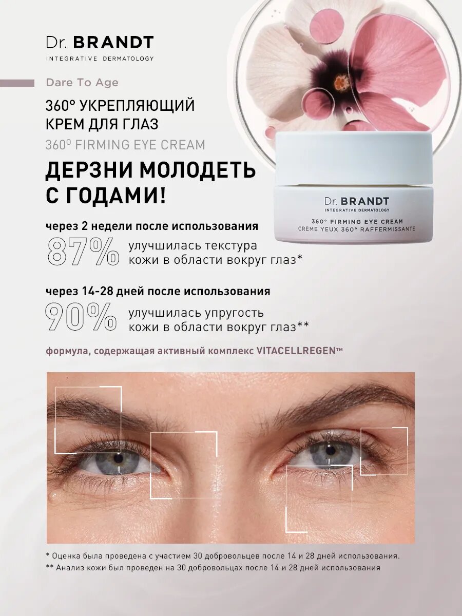 Укрепляющий крем для глаз Dr. Brandt 360° — это надежное средство для тех, кто хочет сохранить молодость и красоту кожи вокруг глаз, защитить ее от негативного воздействия окружающей среды и замедлить процессы старения.