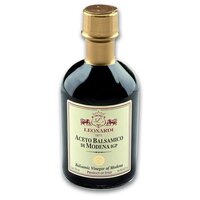 Срок выдержки: 2 года. Сейчас многие любители всерьез увлекаются профессиональной готовкой дома, и национальные продукты кухонь разных стран, о которых еще несколько лет назад знали только гурманы, становятся необходимыми в каждом доме. Теперь купить бальзамический уксус в Москве желает любая хозяйка - этот традиционный бальзамик сопровождает приготовление огромного количества блюд, придавая им неповторимый яркий вкус, который ни с чем нельзя сравнить. Leonardi - это изысканные бальзамические соусы и уксусы из Италии, которые сделают неповторимым любое блюдо. Непреклонно следуя семейным традициям и тщательно выверенным рецептам, семья Леонарди вот уже несколько поколений создает настоящий бальзамик. Производство находится в итальянской провинции Модена, известной как родина традиционного бальзамического уксуса. Для приготовления бальзамика семья использует собственные виноградники, цикл производства полностью закрытый. Leonardi — это не просто семейная традиция, ставшая бизнесом. Это искусство 30-летней выдержки с невероятной палитрой ароматов. Одно из самых известных мест, в котором производят самый лучший бальзамический уксус - Модена. Бальзамик из Модены - это уже стало именем нарицательным, обозначением самой высшей категории данного продукта. Этот кисло-сладкий соус с насыщенным вкусом изготавливается из определенного вида белого винограда - требиано. Выдерживается в деревянных бочках до 12 лет - это и обуславливает его большую редкость и ценность, ведь из целых ста литров сырья только через несколько десятилетий выйдет около пятнадцати литров бальзамического уксуса. Где применяется бальзамический уксус Модены? Бальзамический уксус идеально подходит для салатов. Кроме того, его добавляют при приготовлении рыбы, мяса, супов. Он применяется даже в десертах. Используется в качестве соуса к сырам, свежим ягодам, овощам, фруктам. Для придания блюду удивительного вкуса достаточно крошечной капли бальзамика.
