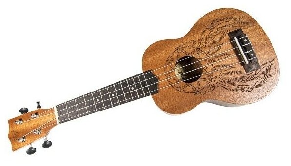 Укулеле изготовлена из экологичных и прочных современных материалов: верхняя дека и корпус из сапеле, гриф выполнен из окуме.