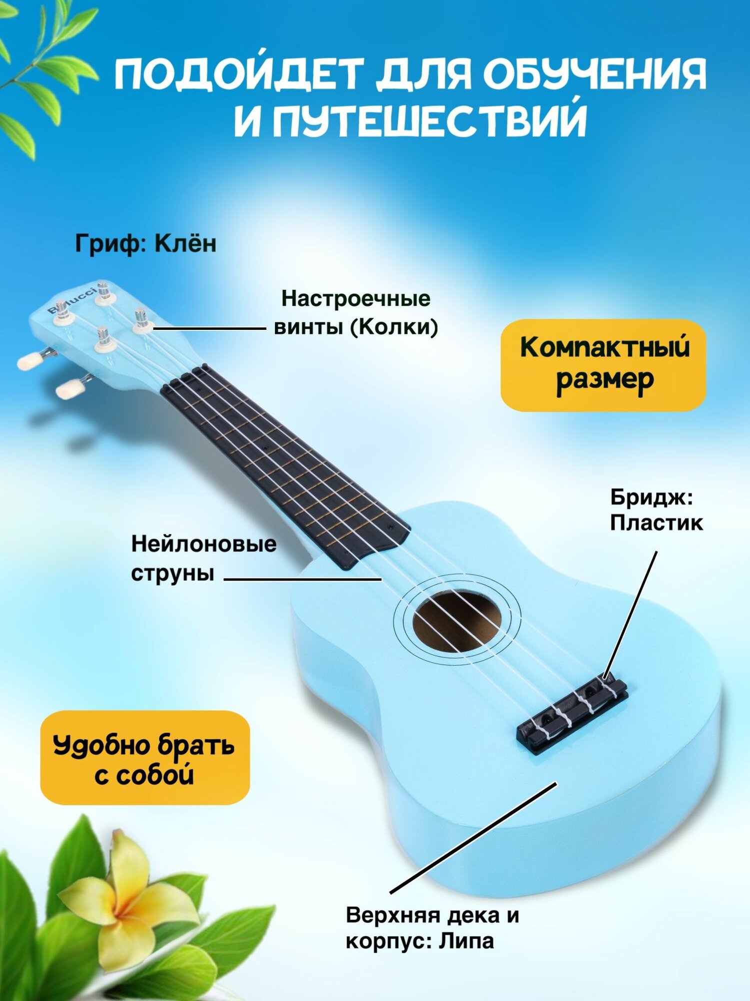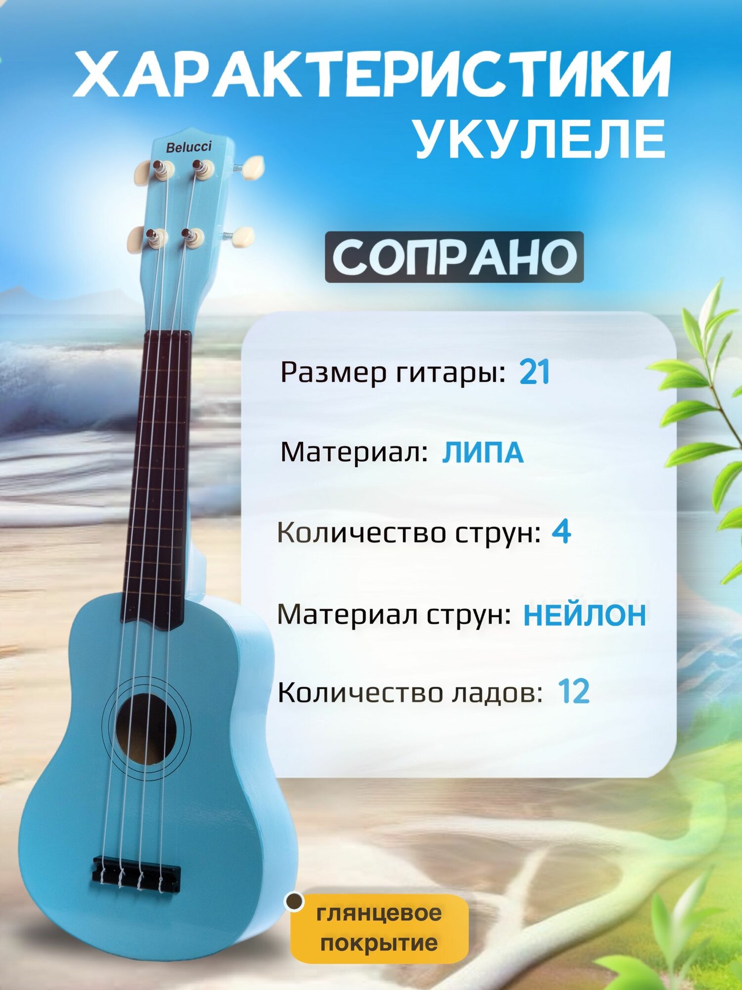 Укулеле (Гавайская гитара) сопрано 21″, Belucci 21 Голубая: сравнение цен, характеристики, фото, актуальное наличие и цены.