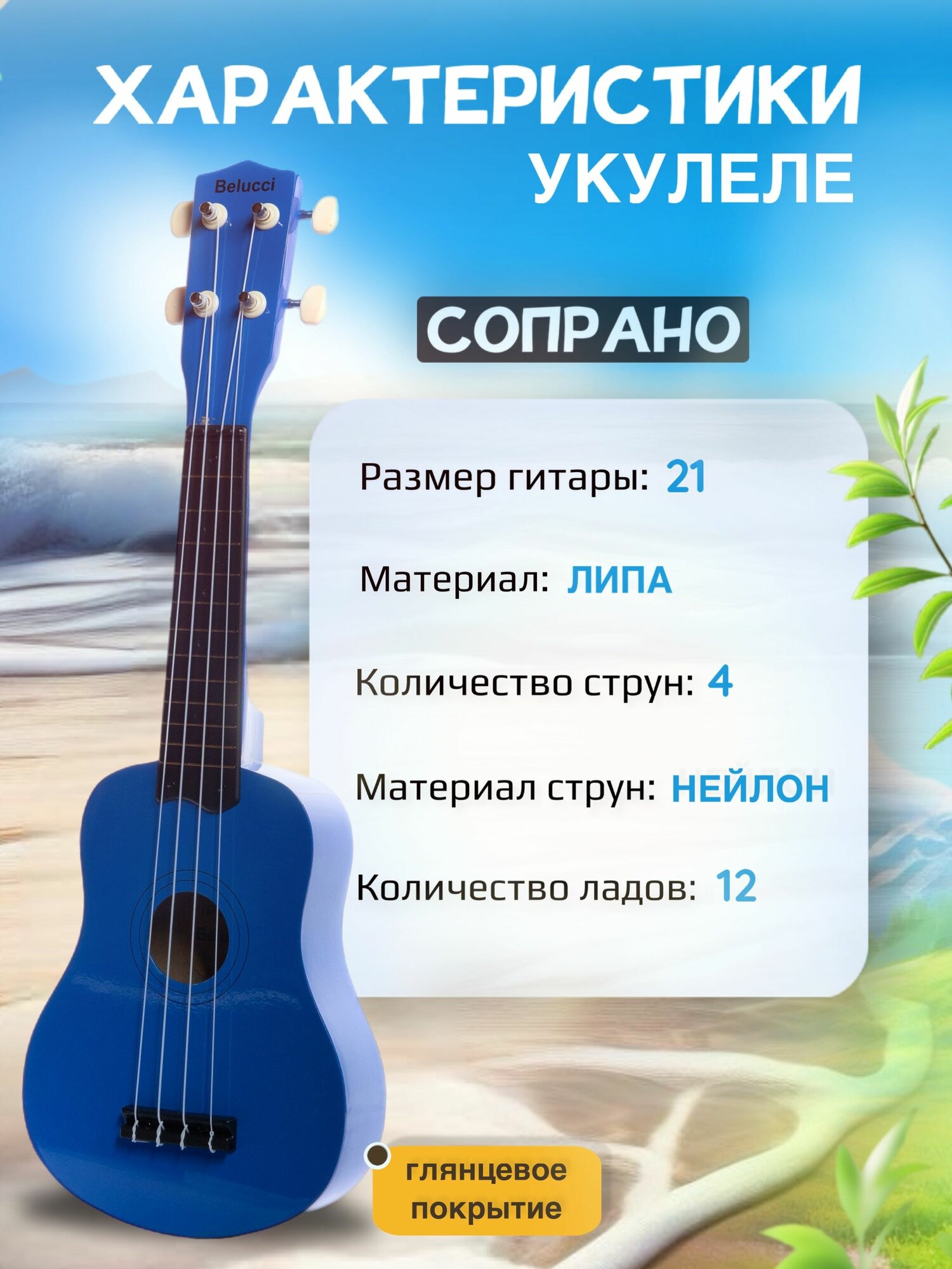 Укулеле (Гавайская гитара) сопрано 21″, Belucci 21 Синяя: сравнение цен, характеристики, фото, актуальное наличие и цены.