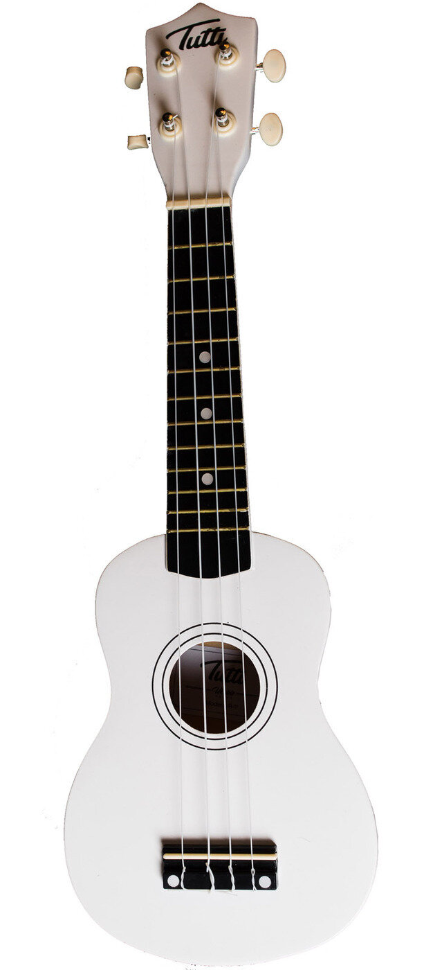 Tutti JR-11/WH - Укулеле сопрано цвет - белый Количество струн – 4 шт, стандарные, нейлон верхняя дека – липа, нижняя дека и обечайка – липа, отделка - матовый лак, накладка на гриф – клен Мензура - 345 мм количество ладов - 12 Габаритные размеры - 53*17*5,5 см вес в упаковке - 0,7 кг