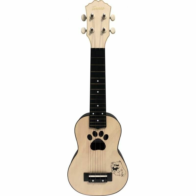 TERRIS PLUS CAT - укулеле натурального цвета, на верхней деке которой изображен кот, а резонаторное отверстие выполнено в форме кошачьей лапки.