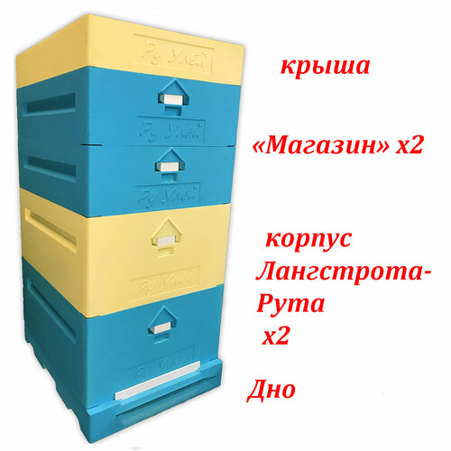 Улей из ППУ на 10 рамок. Комплектация: дно 1шт, корпус Лангстрота-Рута (рамка 230мм) 2шт, магазин (рамка145мм) 2 шт. крыша 1шт. Обратите внимание! при производстве частей улья используются три цвета пигментов: желтый, голубой и салатовый, поэтому фактическая комплектация по цветам может не соответствовать фотографии в карточке товара. Все части цельнолитые и не требуют дополнительной сборки. Дно сетчатое с задвижкой и летковым заградителем. Плотность материала 140 кг/см. Все части улья совместимы с большинством других ульев включая Нижегородец, Лысонь, Медведь и Биененхаус.