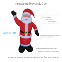 Комплектация: новогодняя, светодиодная надувная фигура, встроенный компрессор, проектор - подсветка, низковольтный адаптер.