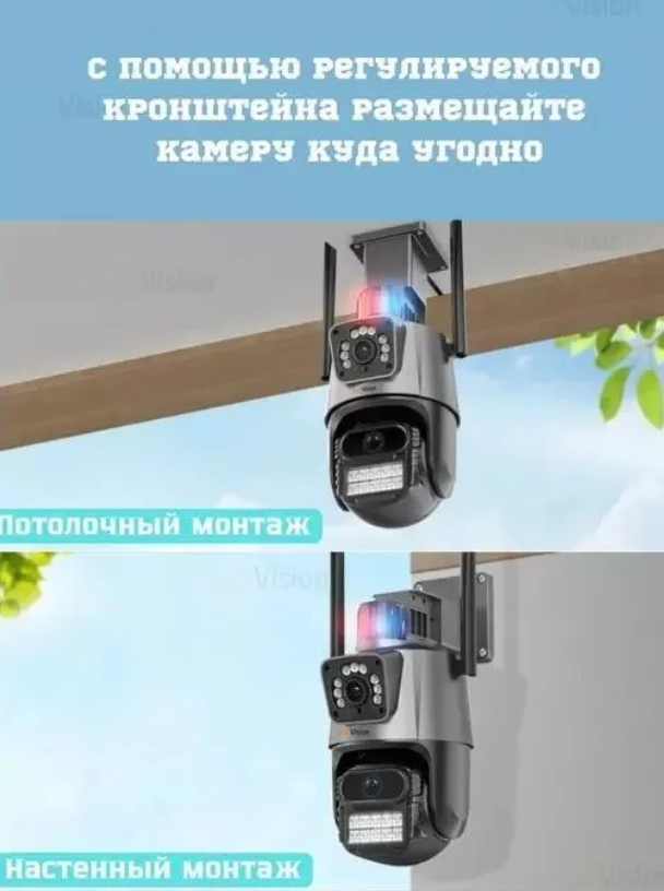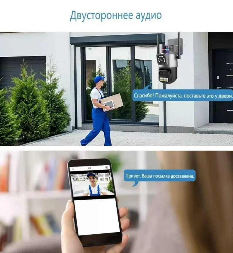 Купить Уличная беспроводная ip камера видеонаблюдения 8 Мп Full HD 4K с двойным объективом\ Широкоугольная поворотная камера с доставкой по всей России.
