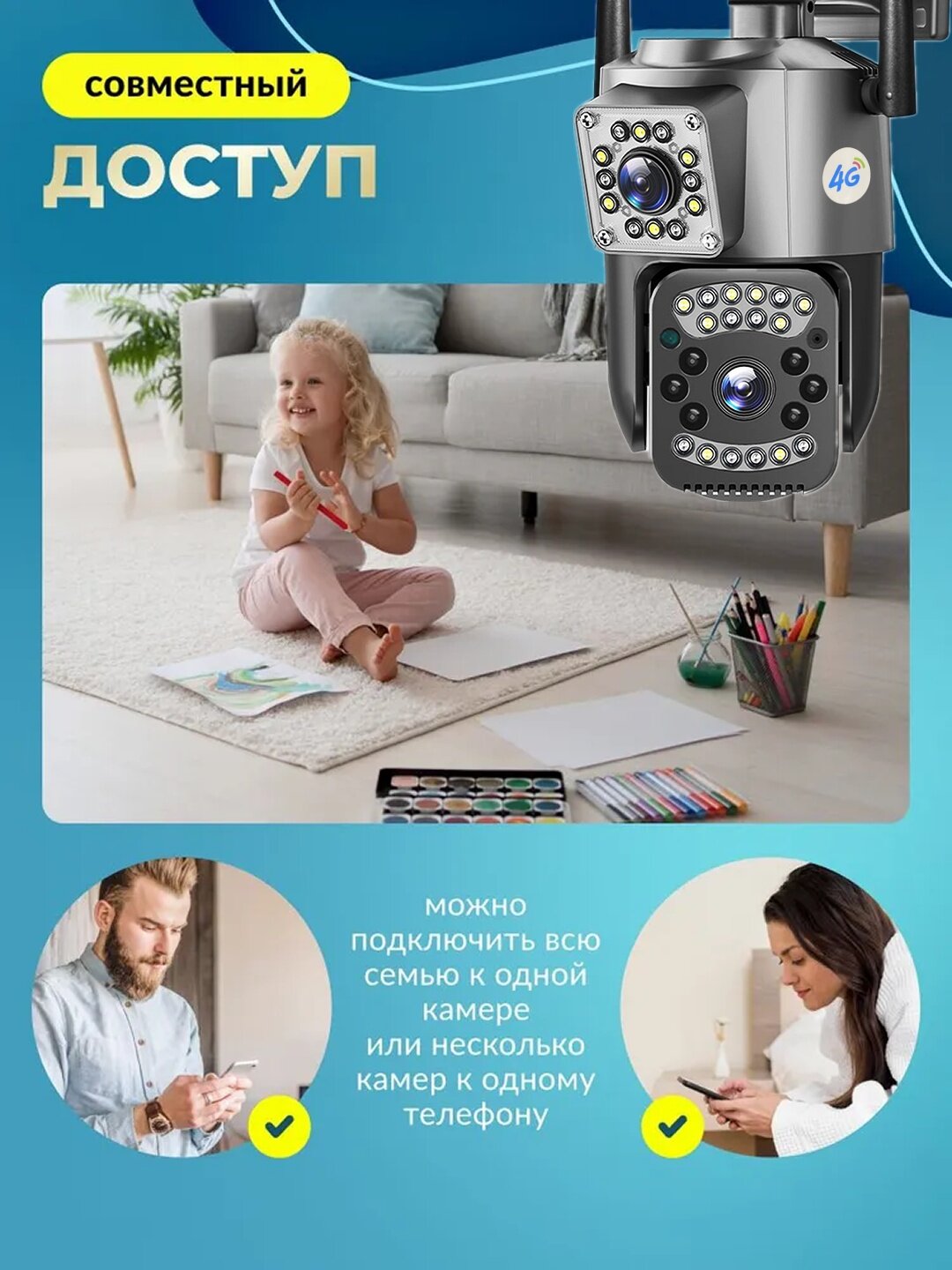 Купить Уличная беспроводная поворотная камера видеонаблюдения UXiQ Smart Camera 4G SC03-G-L с сим картой, и для дома с доставкой по всей России.