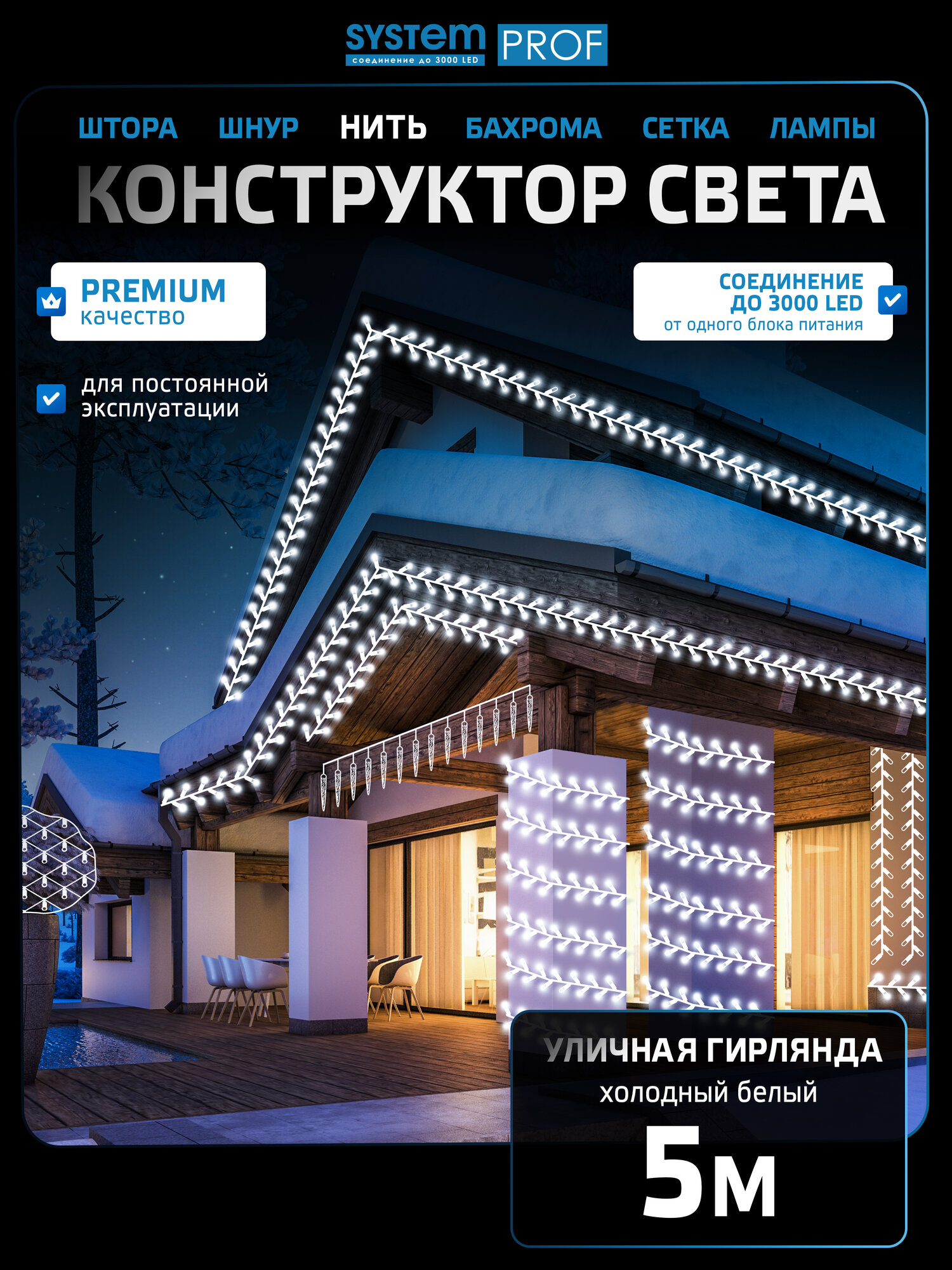 Гирлянда уличная нить 5м, холодный белый, 50 сверхъярких LED, без блока питания.: сравнение цен, характеристики, фото, актуальное наличие и цены.