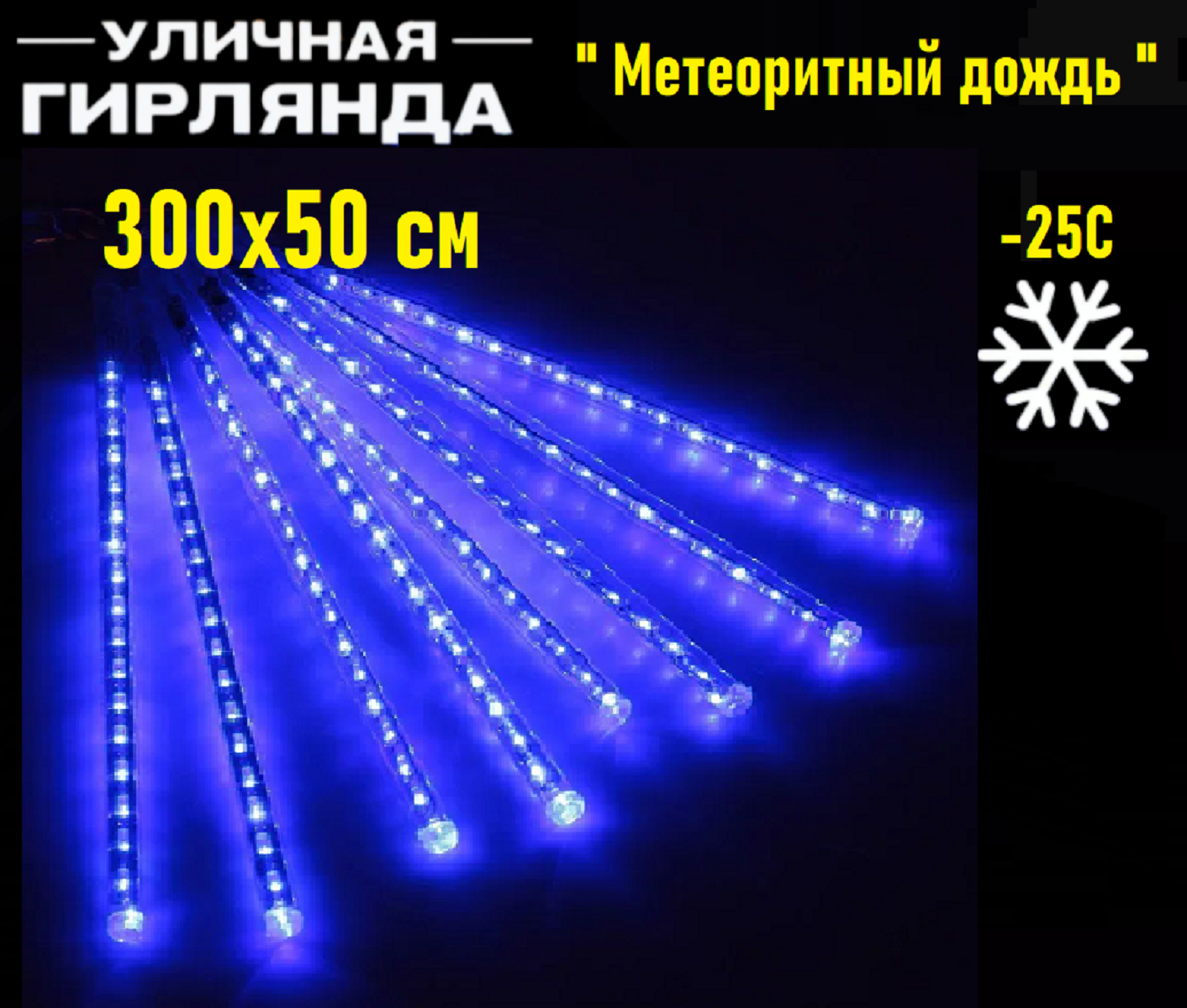 уличная гирлянда сосульки, сетевой шнур 80 см, упаковка, 1 режим мигания,IP65( для улицы, для помещений), энергосберегающая