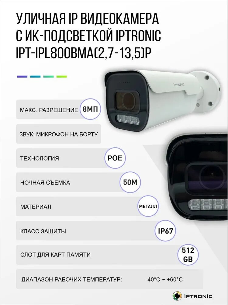 Купить Уличная IP видеокамера IPTRONIC IPT-IPL800BMA(2,7-13,5)P с доставкой по всей России. Уличная IP видеокамера IPTRONIC IPT-IPL800BMA(2,7-13,5)P: сравнение цен, характеристики, фото, актуальное наличие и цены.
