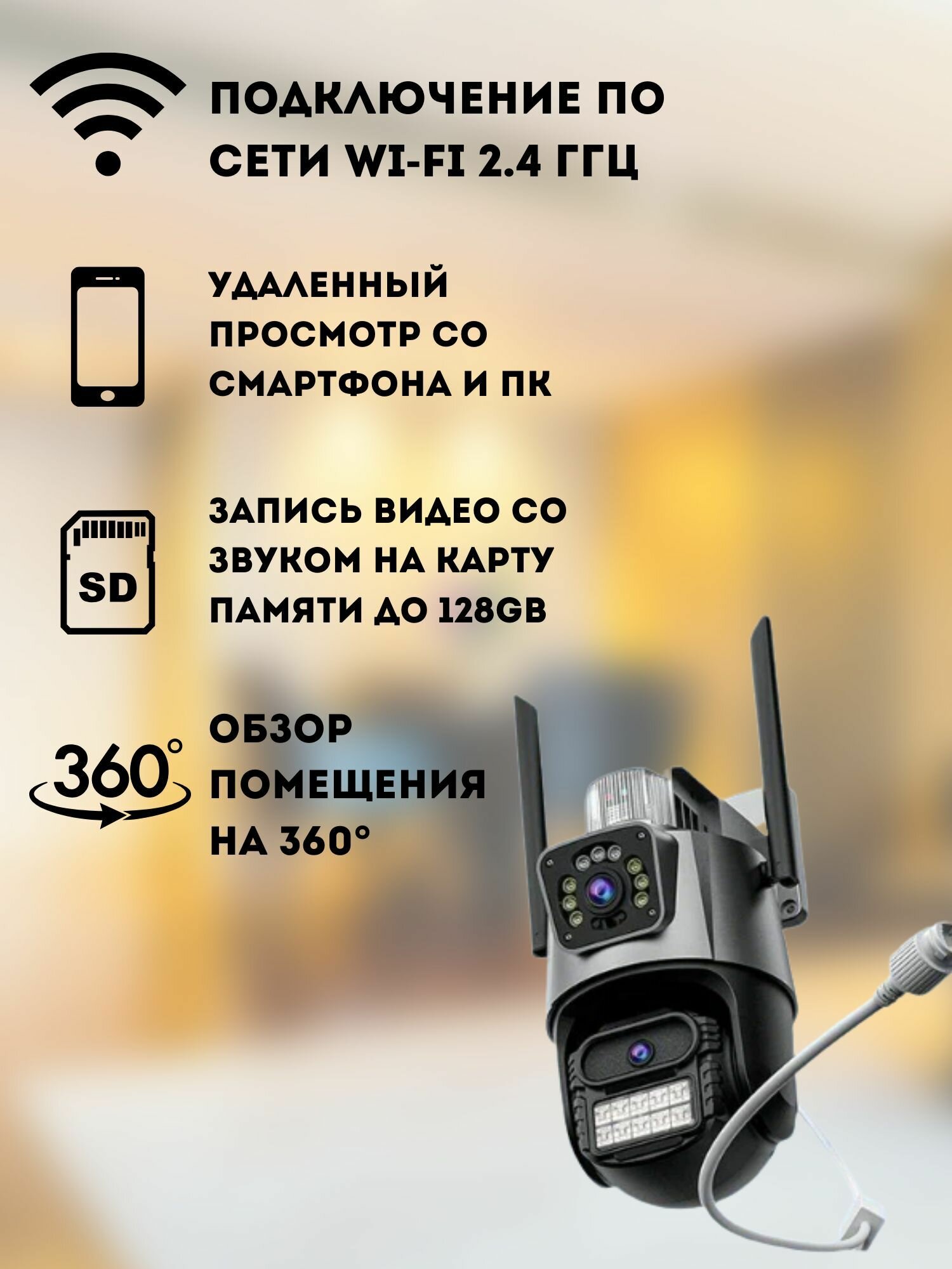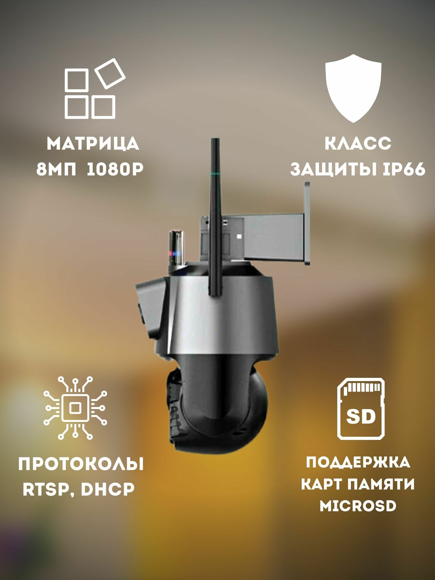 Купить Уличная камера видеонаблюдения с двумя объективами 2 камеры с мигалкой и сиреной Wi-Fi PTZ 4K 8MP с доставкой по всей России.