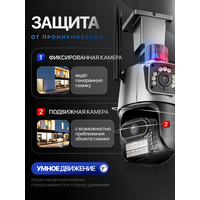 Купить Уличная камера видеонаблюдения с двумя объективами 2 камеры с мигалкой и сиреной Wi-Fi PTZ 4K 8MP с доставкой по всей России.