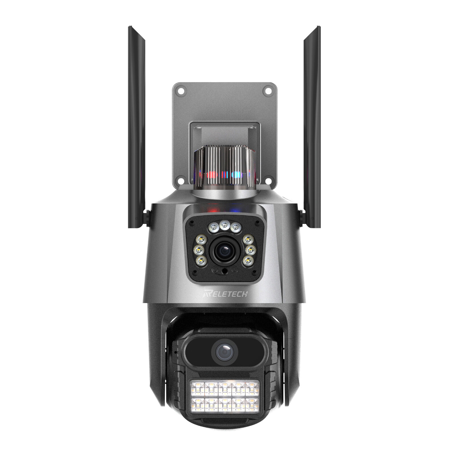 Уличная камера видеонаблюдения с двумя объективами 2 камеры с мигалкой и сиреной Wi-Fi PTZ 4K 8MP