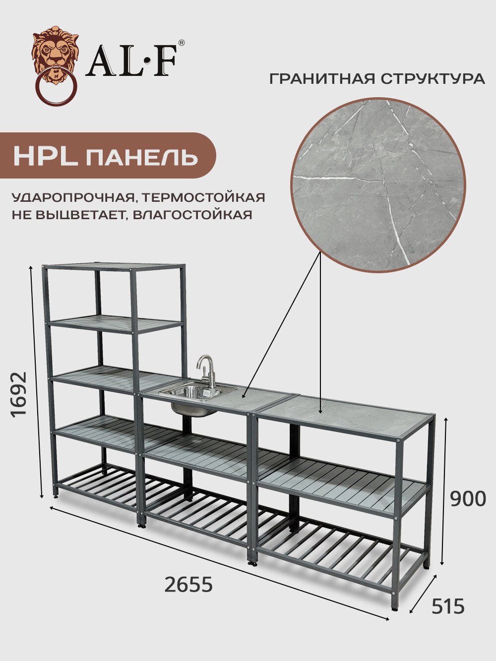Уличная кухня AL-F с мойкой, с HPL столешницей и высоким шкафом, серая: сравнение цен, характеристики, фото, актуальное наличие и цены.