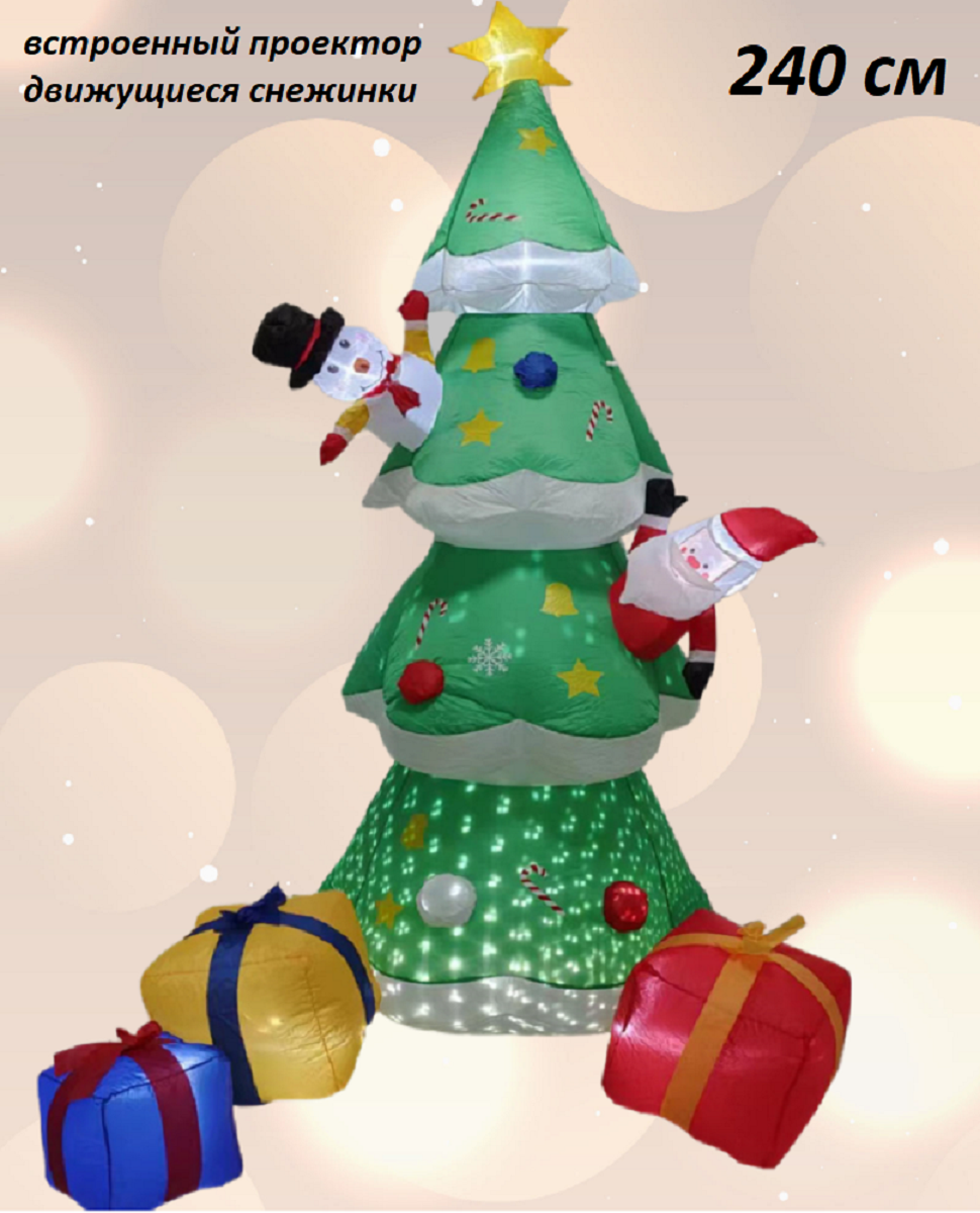 Купить Уличная надувная фигура Новогодняя елка с подарками 240 см, с проектором снежинки, компрессор, IP44 с доставкой по всей России.