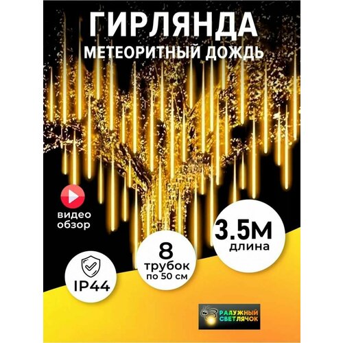 【Подсветка для метеоритного дождя】 Включает в себя 8 лампочек, по 24 светодиода в каждой, всего 192 светодиода, что обеспечивает прекрасный световой эффект.