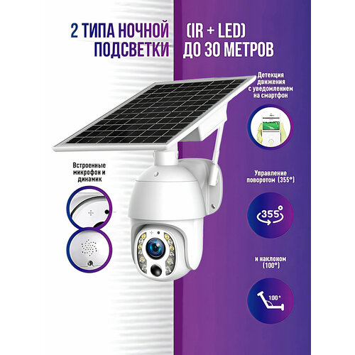 Наряду с инфракрасной подсветкой, автономная камера с солнечной батареей имеет блок светодиодов мягкого белого свечения, что позволяет получать качественное цветное изображение даже ночью. Активировать видимую подсветку может срабатывание датчика движения или команда оператора. Дальность действия видимой и инфракрасной подсветки составляет до 30 метров.