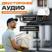 | Дополнительная информация | Уличная поворотная камера видеонаблюдения с беспроводным подключением по Wi-Fi или LAN кабелю, с удаленным управлением из любой точки мира при наличии подключения к интернету. Информирует о движении в кадре человека и отправляет push сообщение на тел. Благодаря такой опции вам будет приходить меньше ложных сообщений о движении (листва, дождь). Видеокамеру можно настроить на включение света в темное время суток при появлении объекта в кадре, ведётся аудиозапись всего происходящего в зоне камеры. Имеет двухстороннюю аудиосвязь, можно использовать ее как домофон |