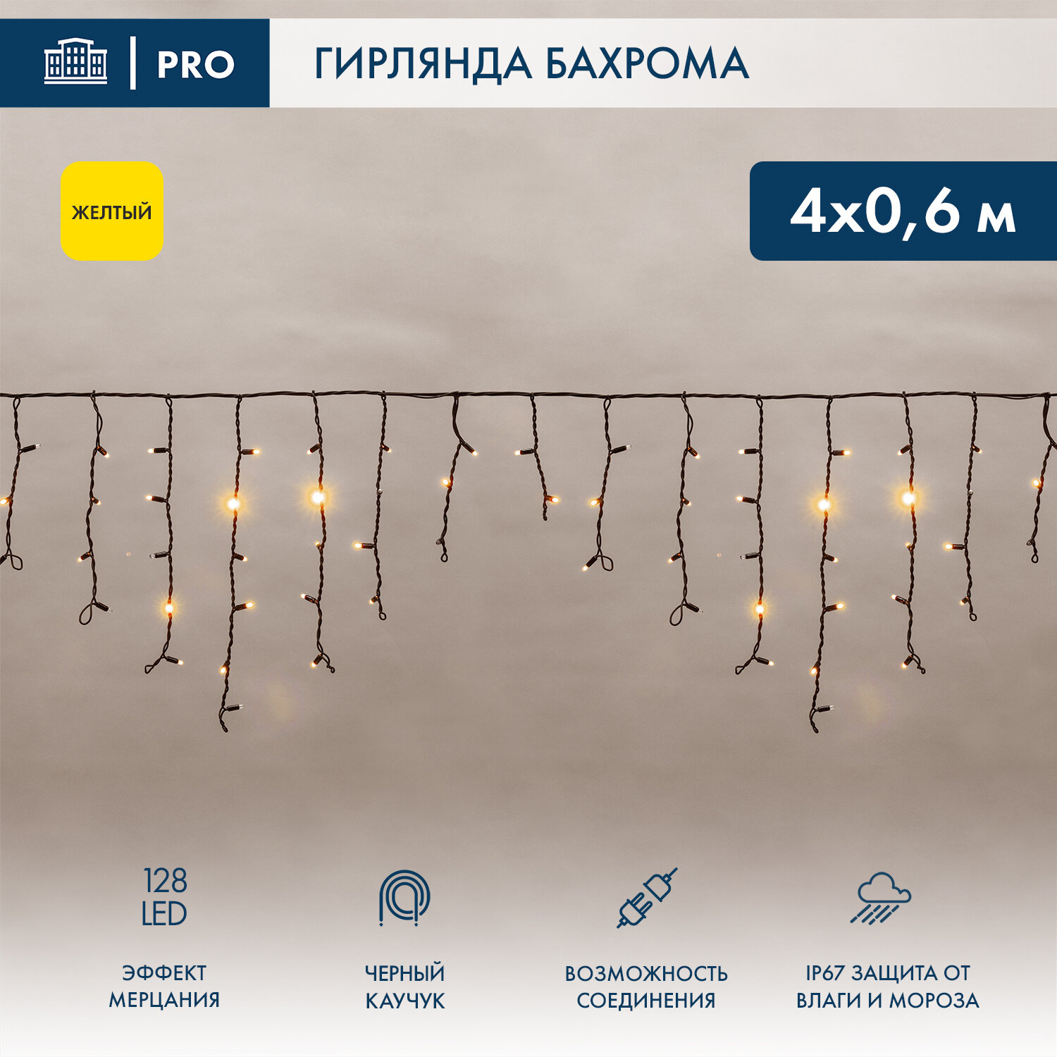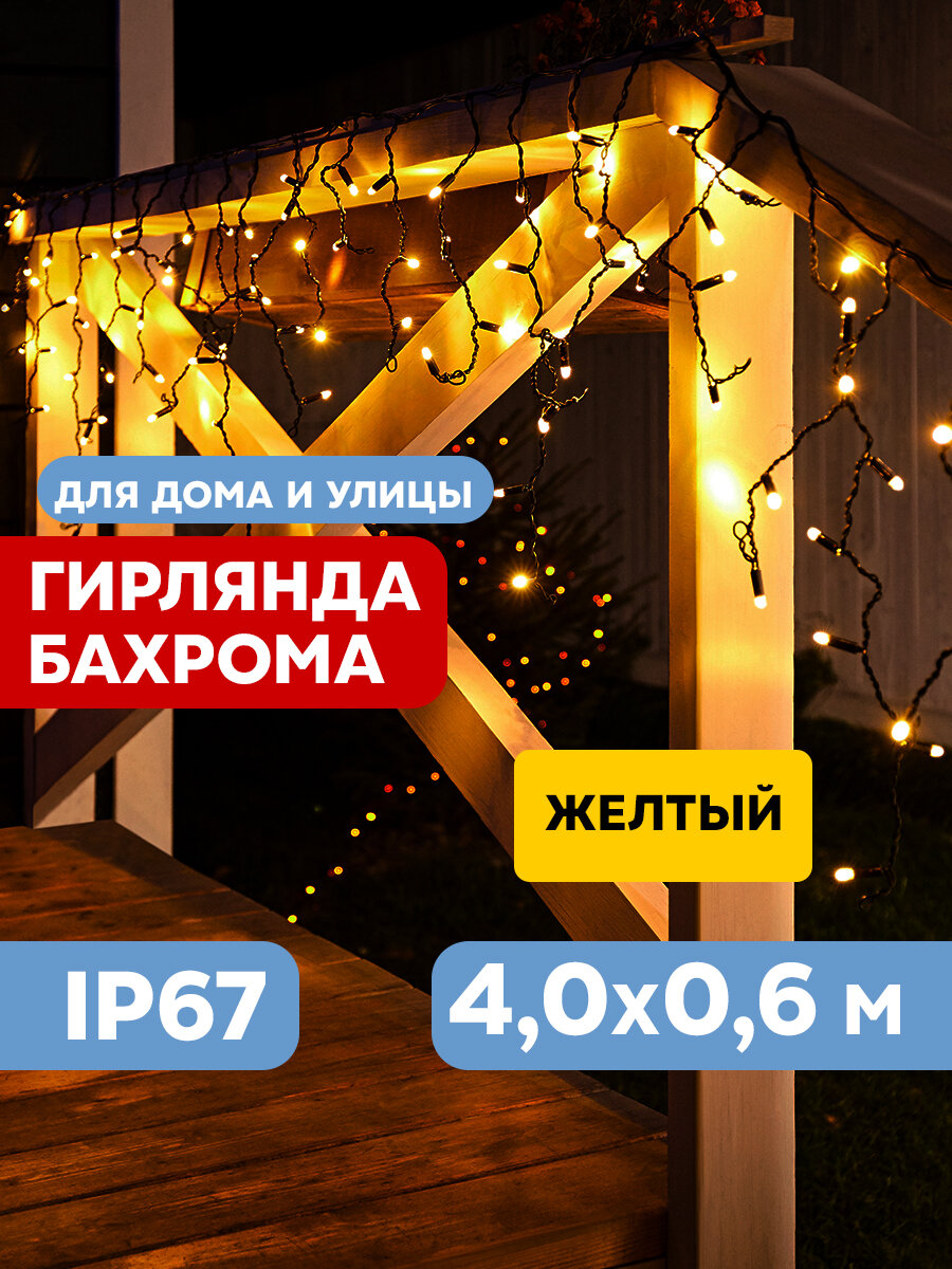 Купить Гирлянда уличная NEON-NIGHT Бахрома 4х0,6 м, 128 LED, желтое свечение, черный каучук, IP67 с доставкой по всей России. Гирлянда уличная NEON-NIGHT Бахрома 4х0,6 м, 128 LED, желтое свечение, черный каучук, IP67: сравнение цен, характеристики, фото, актуальное наличие и цены.