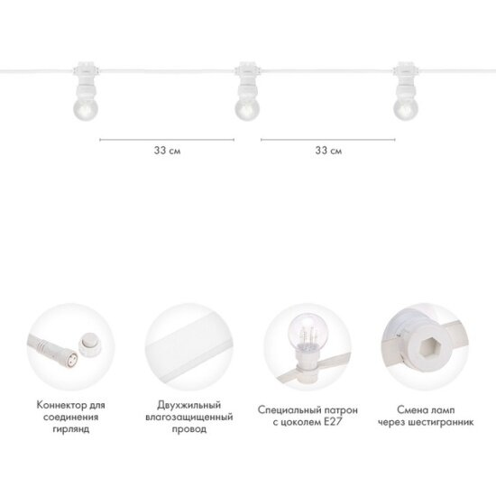 | Комплектация | Готовый набор гирлянды комплектуется в бухтах |