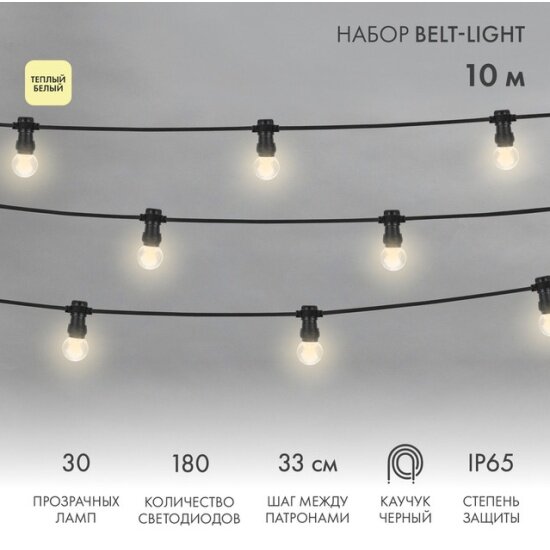 Купить Светодиодная гирлянда Белт-лайт Neon-night 10 м, 30 ламп, 180 диодов, тепло-белое свечение, провод из черного каучука, IP65 с доставкой по всей России. Светодиодная гирлянда Белт-лайт Neon-night 10 м, 30 ламп, 180 диодов, тепло-белое свечение, провод из черного каучука, IP65: сравнение цен, характеристики, фото, актуальное наличие и цены.