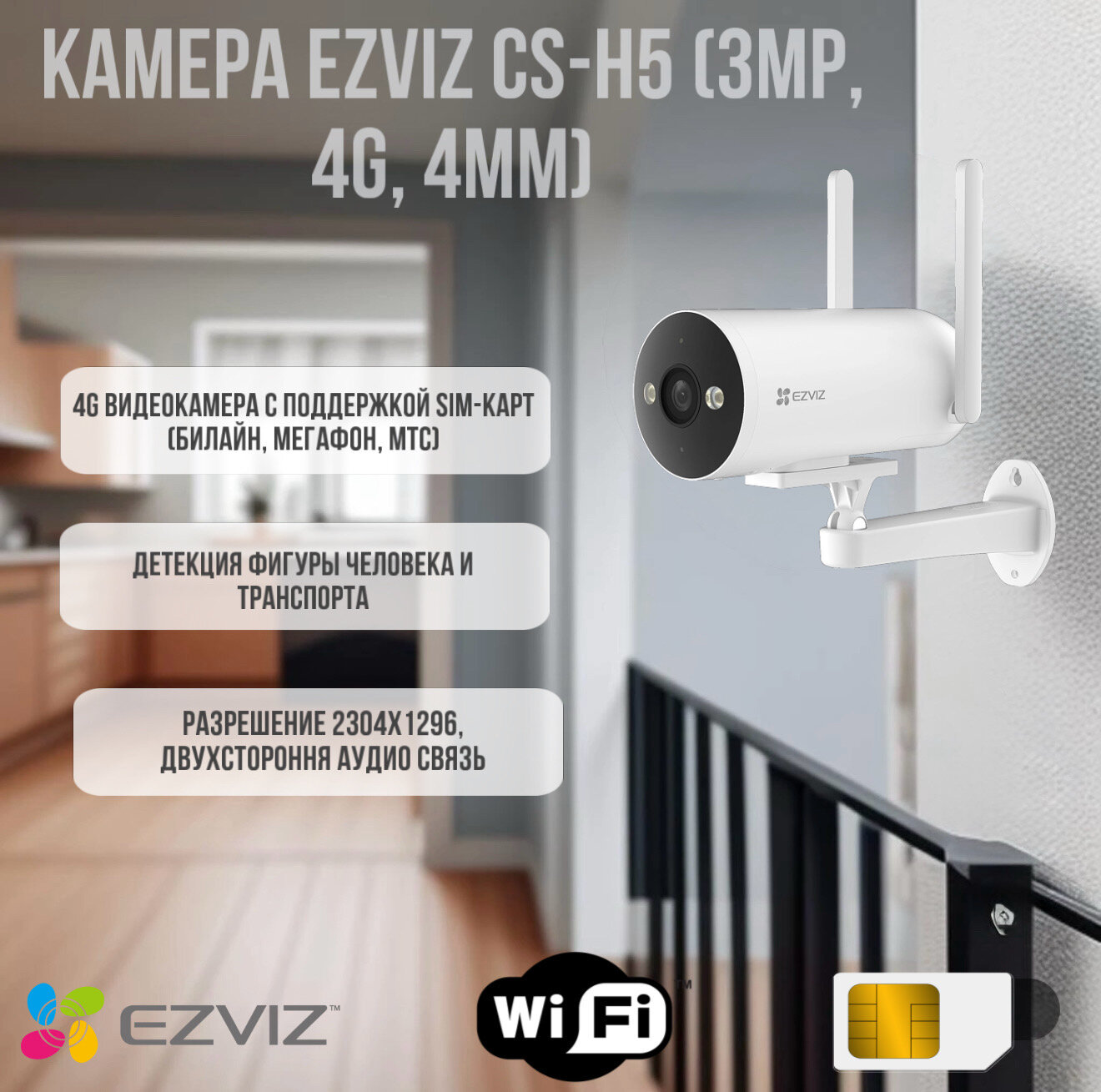 Уличная Wi-Fi камера Ezviz CS-H5 (3MP,4G,4mm) c поддержкой SIM-карт (Билайн, Мегафон, МТС (тариф для модемов): сравнение цен, характеристики, фото, актуальное наличие и цены.