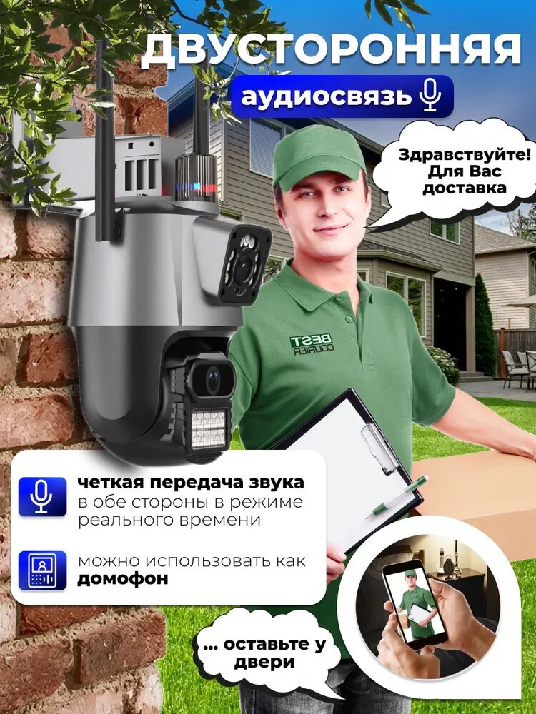 Купить Уличная Wi-Fi камера видеонаблюдения 8 Мп Full HD 4K Камера двойная 8мп два объектива, черная с доставкой по всей России.